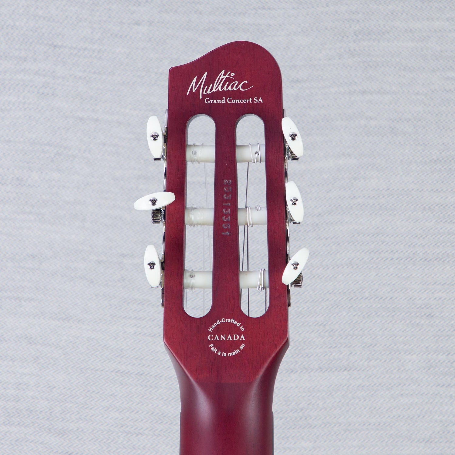 This Multiac Grand Concert SA model features pristine-sounding electronics by LR Baggs. The Multiac Grand Concert guitar's design utilizes a larger body that joins the neck at the twelfth fret, and the 2-inch nut width is slightly larger than the standard Multiac, which is more typical of the classical tradition. The result is the ultimate guitar for classical players who require an amplified sound.