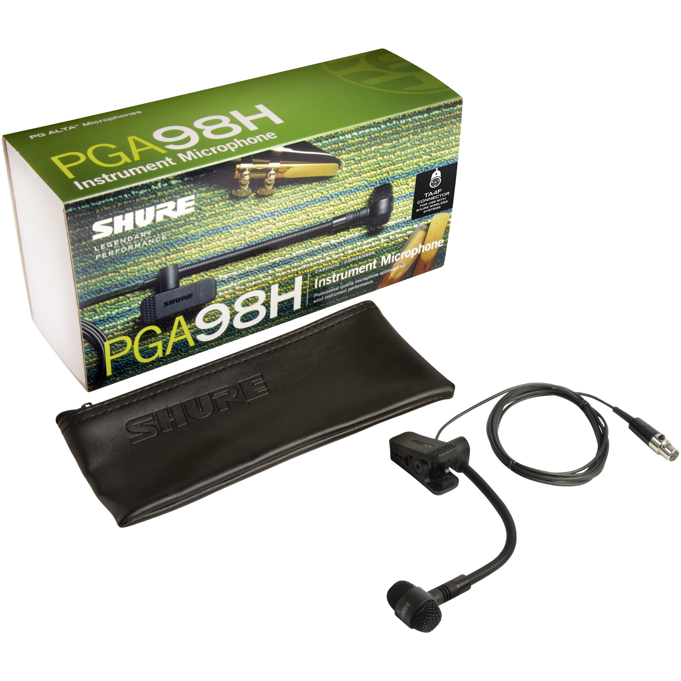 The PGA98H is a professional quality wind instrument microphone with an updated industrial design that features a black metallic finish and grille offering an unobtrusive visual presence. Legendary Shure quality construction ensures exceptional performance in rigorous environments.