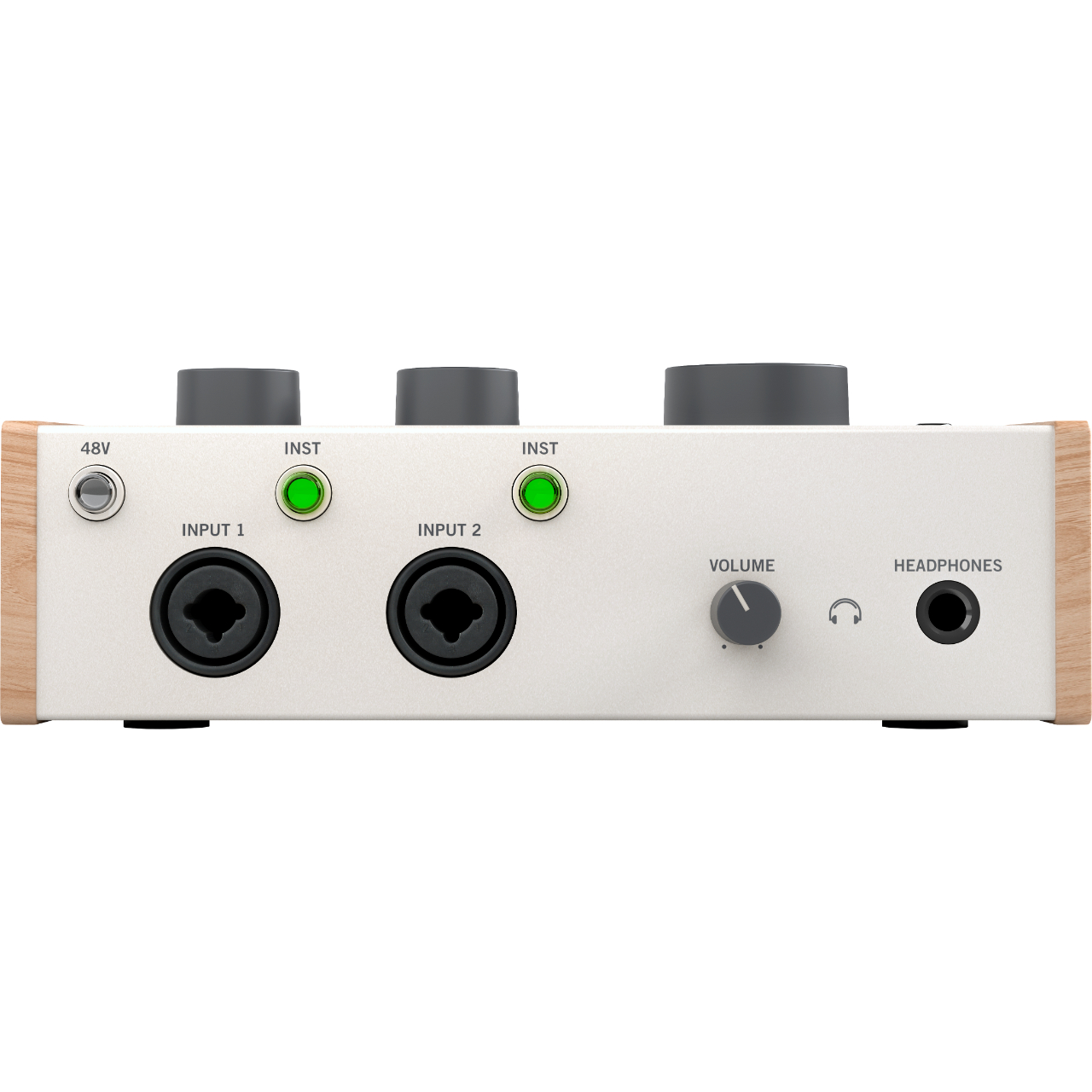 Volt 276 gives you simple 2-in/2-out audio connections. Just plug a mic or instrument into the front panel. Then connect your speakers or headphones to monitor your audio with no latency. With Volt, you'll be creating like a pro, fast.
