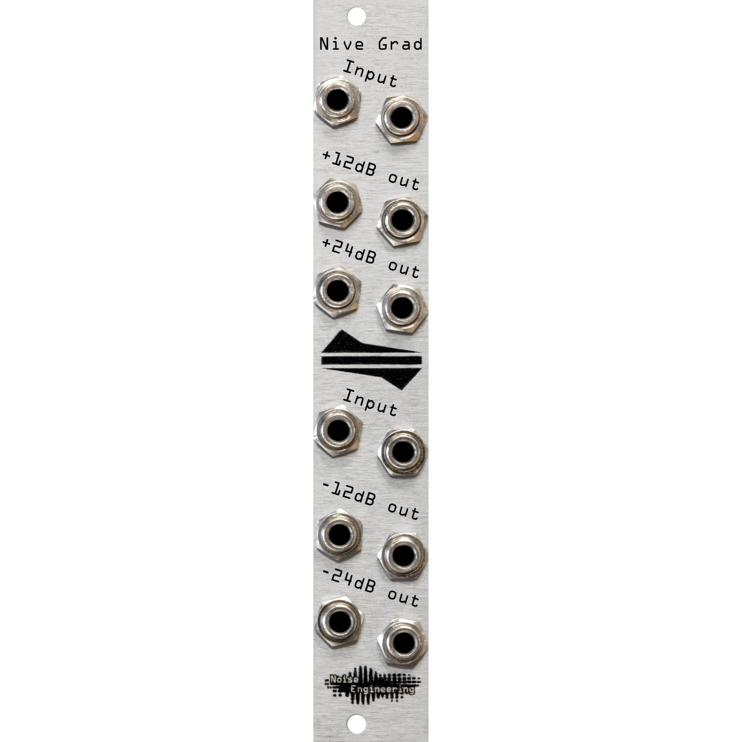 Nive Grad was designed to be a simple and small solution for bringing guitars, external effects, or line-level synths up to Eurorack levels, then bring the Eurorack signals back down to line and pedal levels. In just 4 HP, it can be used as stereo or dual mono, and is set up for two different voltage step-ups and step-downs. Nive Grad is a great and simple way to bring all your gear into Eurorack (and back out).