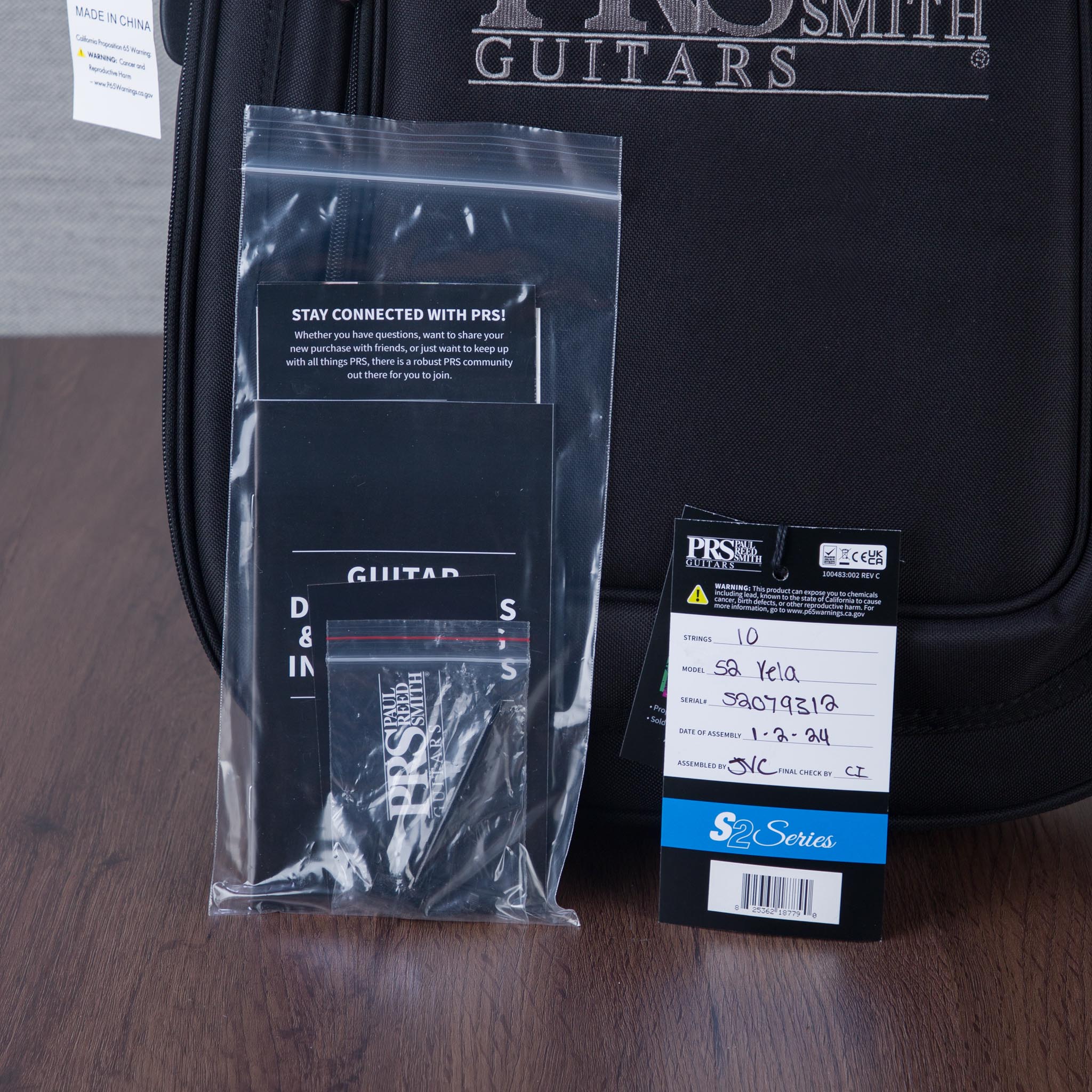 Anchored by PRS playability and craftsmanship, the S2 Vela is perfect for players who want PRS build quality and reliability with a fresh aesthetic. The Vela is the maiden voyage into an offset body shape for PRS and is both elegant and edgy. Loaded with a PRS DS-01 humbucker in the treble pickup position and the PRS Narrowfield in the bass pickup position, the Vela has a bright, punchy tone that sounds great plugged into your pedalboard or straight into an amp. A coil-tap on the tone control allows the DS-01 pickup to split into singlecoils and explore a whole new range of tones. The PRS plate-style bridge holds two brass saddles specifically designed for great sustain and perfect intonation so both rhythm and lead tones sound great no matter where you are on the fretboard. In the studio or on the stage, you won’t want to leave this guitar at home.