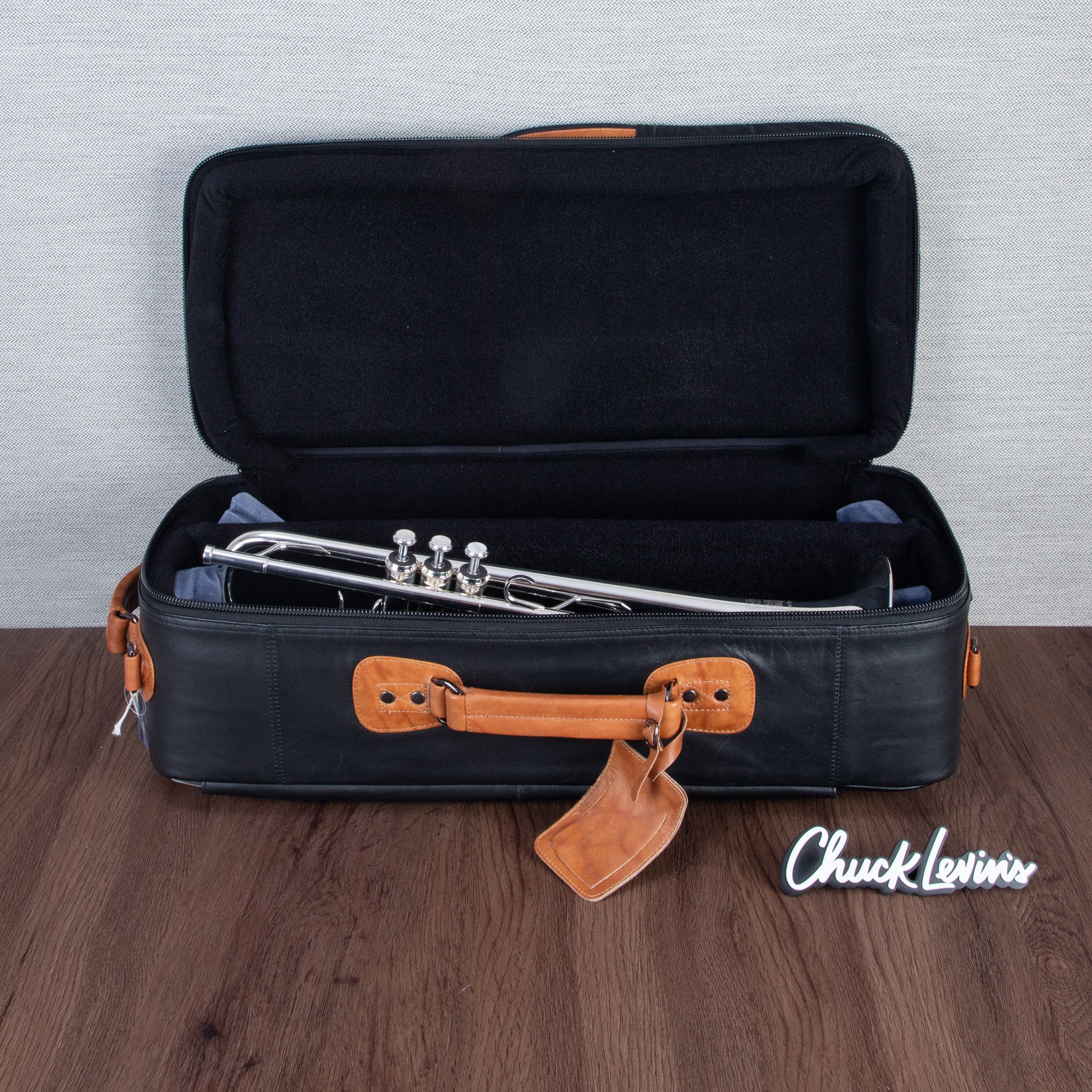 Years of meticulous testing and optimization have culminated in a trumpet distinguished by its .50 brass bell in silver plate, featuring a 123mm bell flare and French bead for a resonant, commanding sound. The Adams valve block Model C3, with its Nickel Silver balusters, Yellow Brass casing, and a large 11.7mm bore, complements the top centre stainless steel valves, which are equipped with brass valve guides, ensuring smooth action and reliable performance.