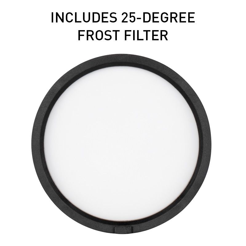 The Encore LP7IP includes a removable 25-degree frost filter. There are several additional frost filter options (sold separately) that customize the beam angle. All filter snap into the front of the fixture.
