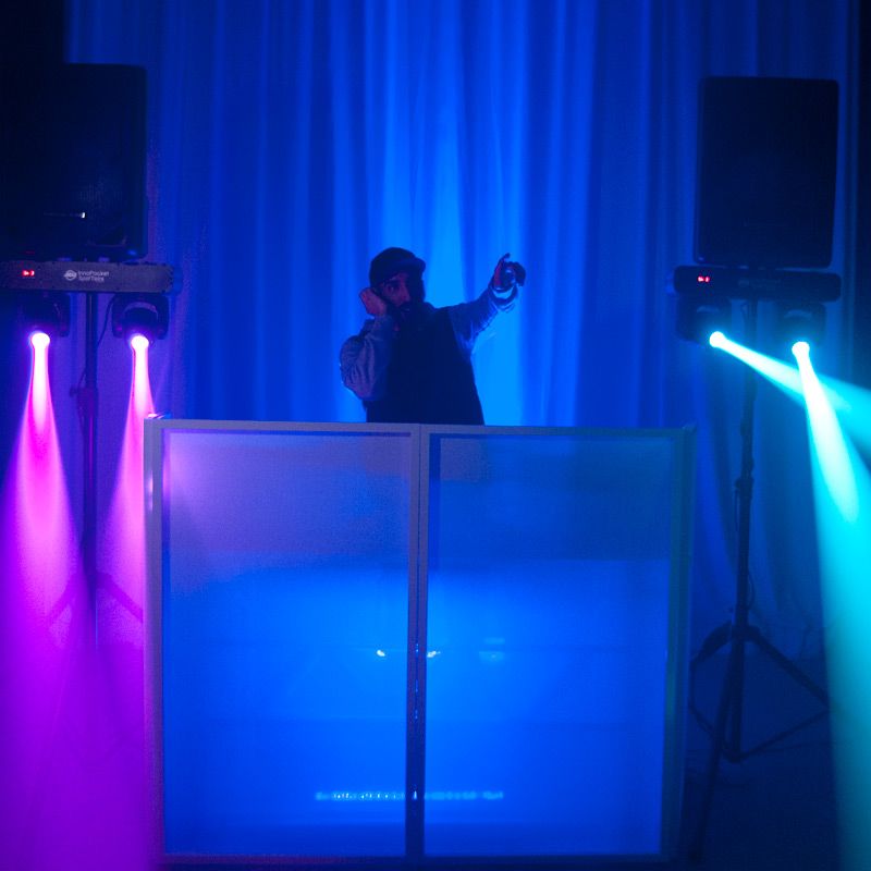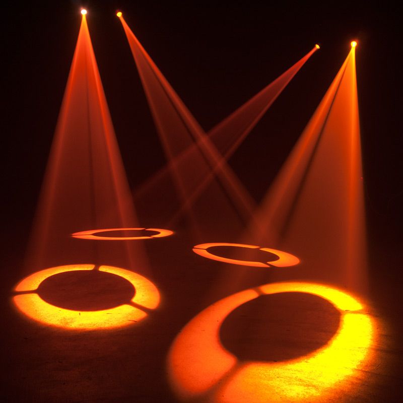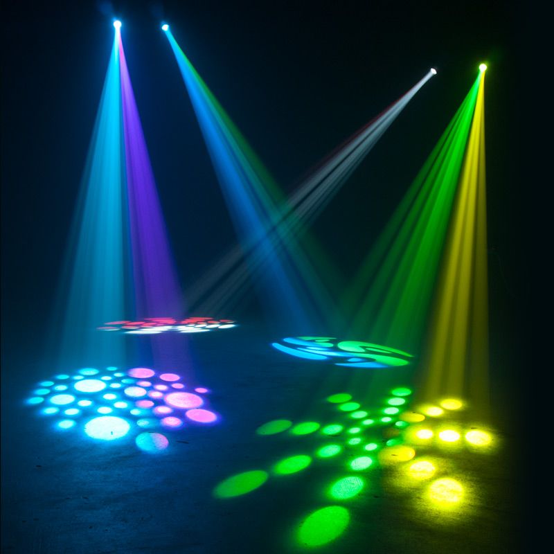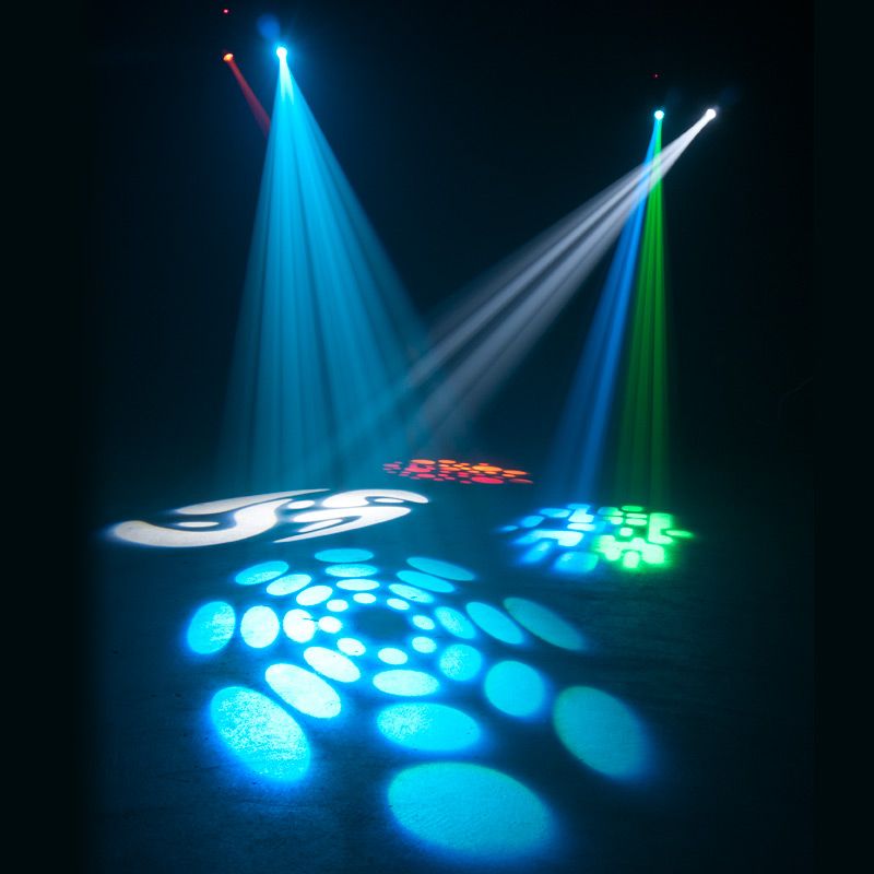 - High output dual mini Moving Heads, each with a bright white 12W LED source