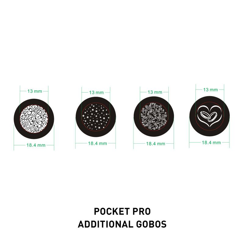 The Pocket Pro also includes a locking powerCon for power, so you never need to worry about vibration or not having a secure AC connection. This fixture features seven colors plus white and 7 replaceable GOBOs (plus 4 additional GOBOs included in the box). The GOBOs and colors are on separate wheels. These features are not found in moving heads of this class.