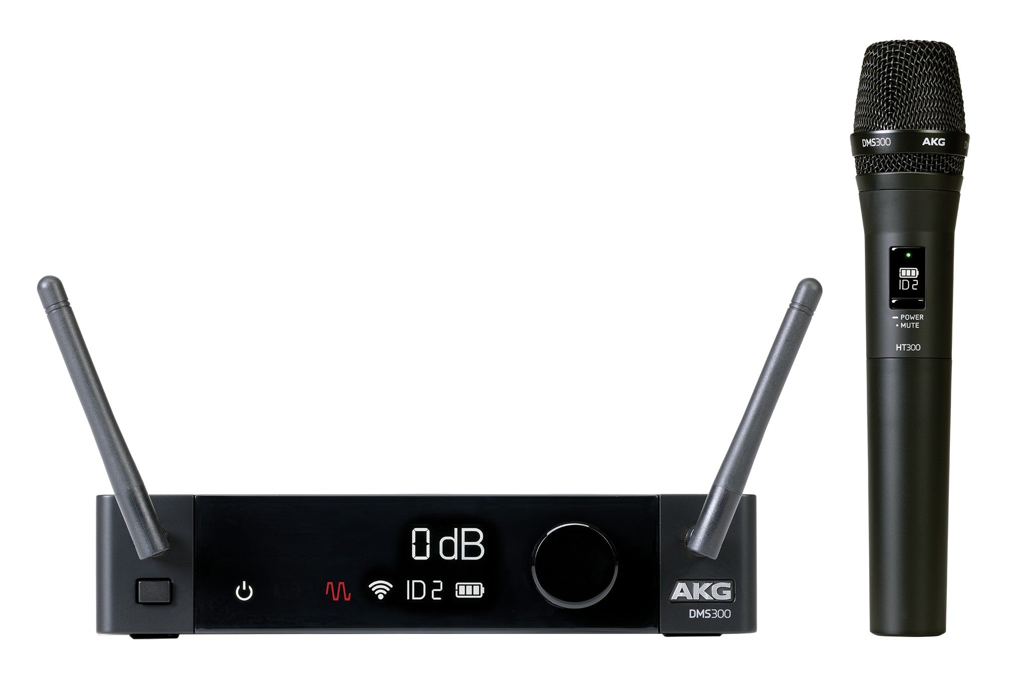 AKG DMS300 professional digital wireless systems for performers and presenters combine signature AKG sound quality and rock-solid, license-free 2.4GHz operation with advanced security features, extended battery life, and the ultimate ease-of-use. The DMS300 is available in two options: with a high-quality, AKG handheld microphone or with a bodypack. The bodypack is instrument-ready and can also be combined with a wide range of AKG headsets or clip on mics (available separately) for singers or presenters.