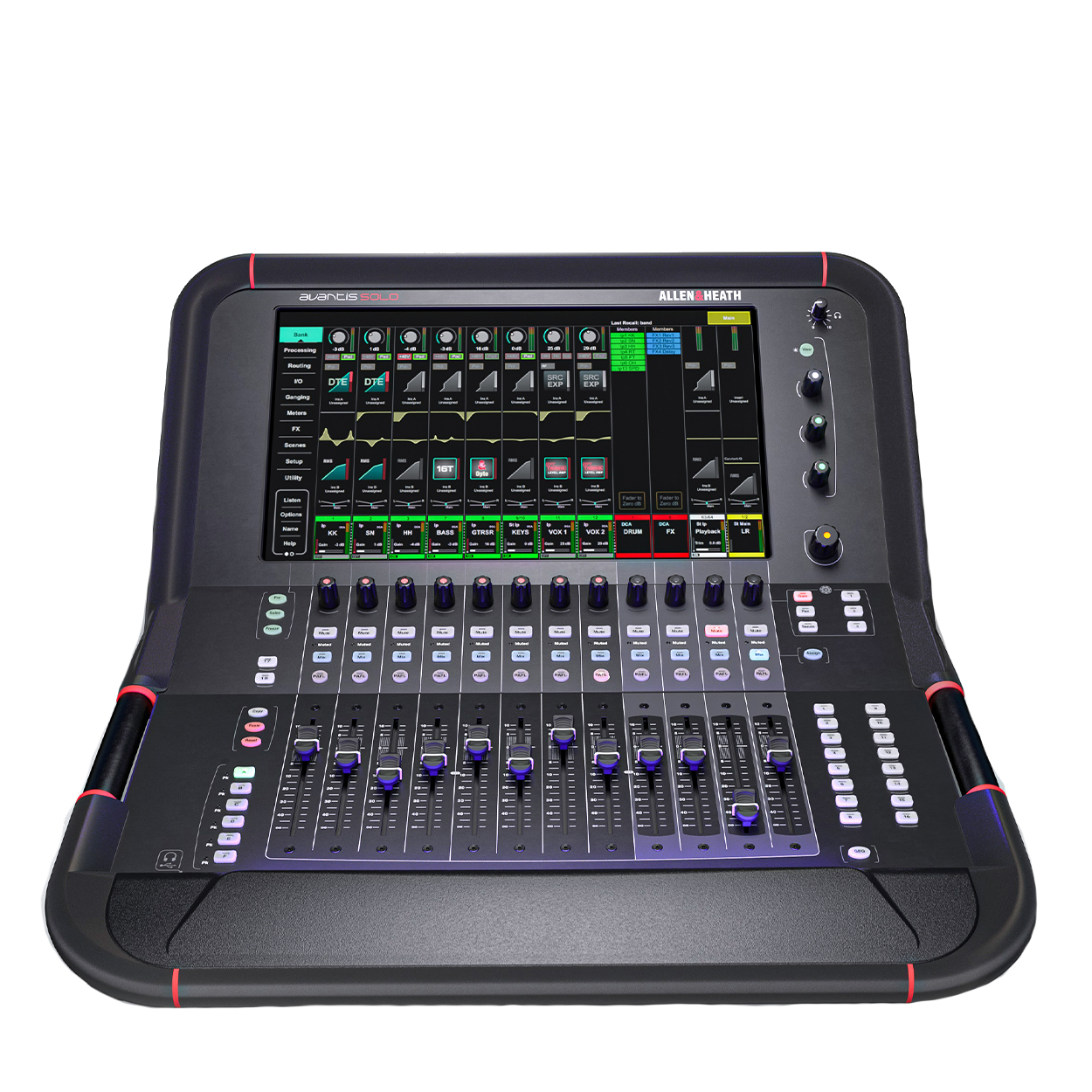 Avantis Solo distills Allen & Heath Avantis into a potent single screen package. Powered by Allen & Heath’s award winning XCVI FPGA, Avantis Solo boasts 64 channels of input processing with 42 configurable busses; an intelligent SLink port connecting Avantis Solo with the Everything I/O range of remote expanders; studio-grade hardware emulations from Allen & Heath’s flagship dLive system via the optional dPack upgrade; and a super strong yet lightweight full metal chassis.