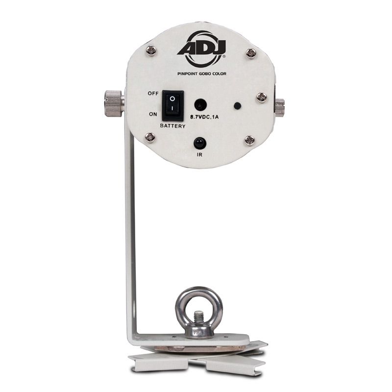 Communicate your message in light! The ADJ PinPoint Gobo Color is a battery powered GOBO projector powered by a 10-Watt Quad (RGBA 4-in-1) LED. It includes 4 standard removable GOBOs and a frost filter to defuse the beam for wider washes of light. When the GOBO is remove it may be used as a pinspot to spot tables, decor, architecture or used for special effects.
