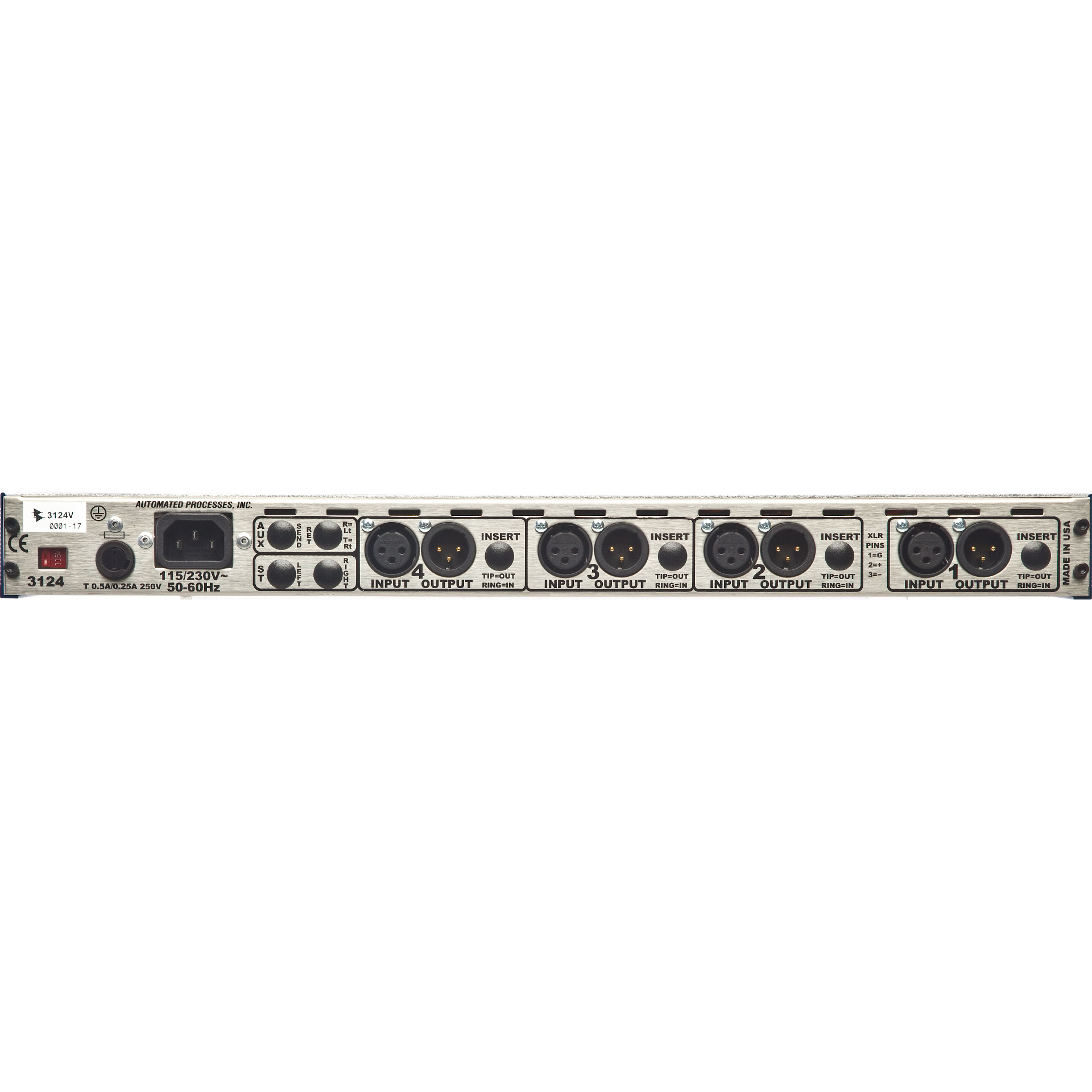 The 3124V also features up to 65 dB of gain. Additionally, the Hi-Z front panel inputs feed directly to the op amps, which allow a low level input such as a guitar or bass to be amplified without a matching transformer or direct box. These Hi-Z inputs can take levels as high as +20 dBu, making them perfect for keyboards and other high level devices. The mic preamp outputs are on rear panel male XLR connectors.