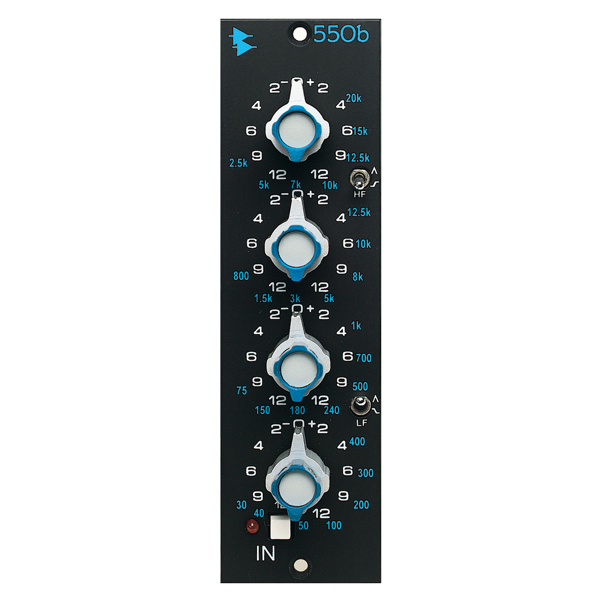 The benefits of the API 550b are most obvious to those who work with EQ on a continuous basis. If major tonal restructuring is required, the extraordinary headroom made possible with API's 2520 Op Amp offers the predictable and warm analog performance, even under duress. With a surprisingly wide range of tonal variations, the 550b is an invaluable and professional audio tool with great flexibility and excellent sonic ability.