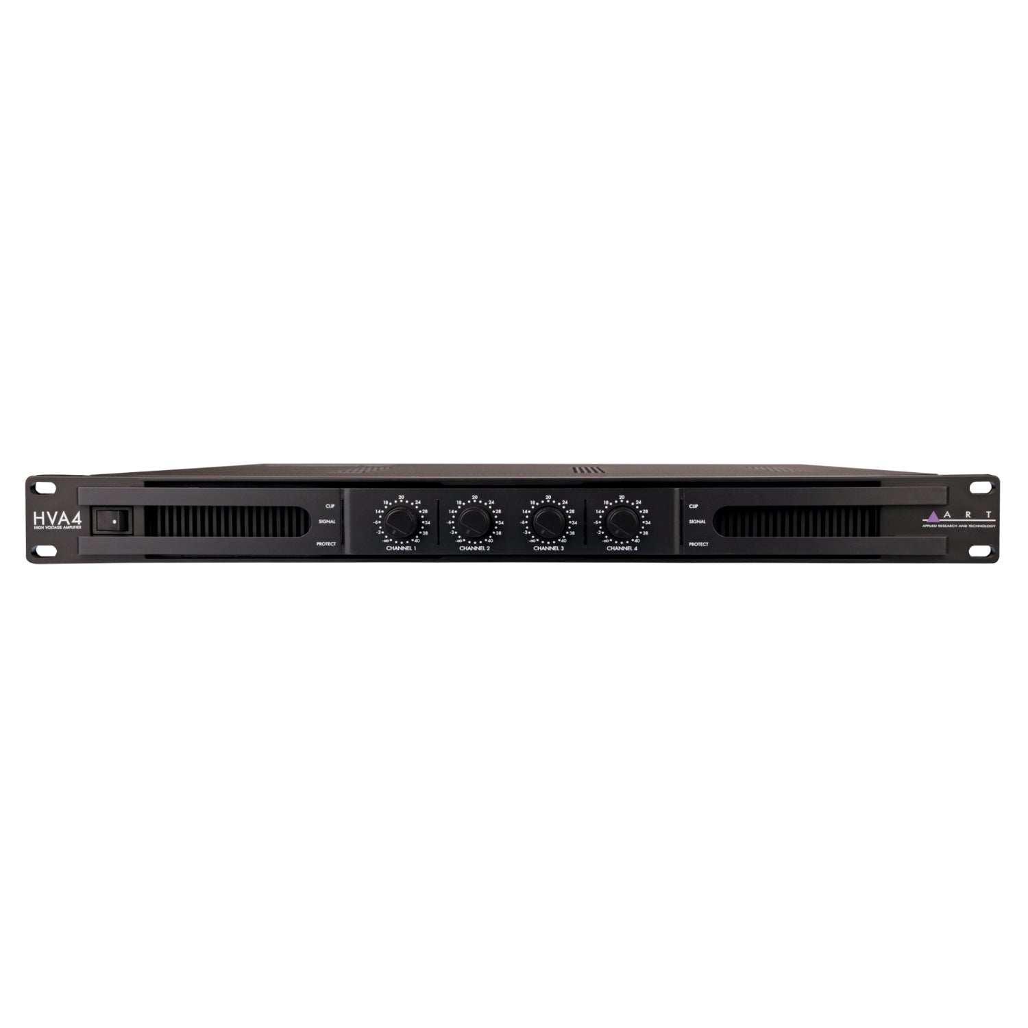 The ART HVA Series 1 and 4 are class-D installation amplifiers. They are suitable for both 70/100V line installations (selectable through dip-switches). Each channel has its own gain control and LED indicators (signal, clip and protection). The input and output connections are made through Euroblock connectors. The amplifiers are a 1U rack 19-inch size is very appropriate for many types of installations, taking advantage of its multichannel design.