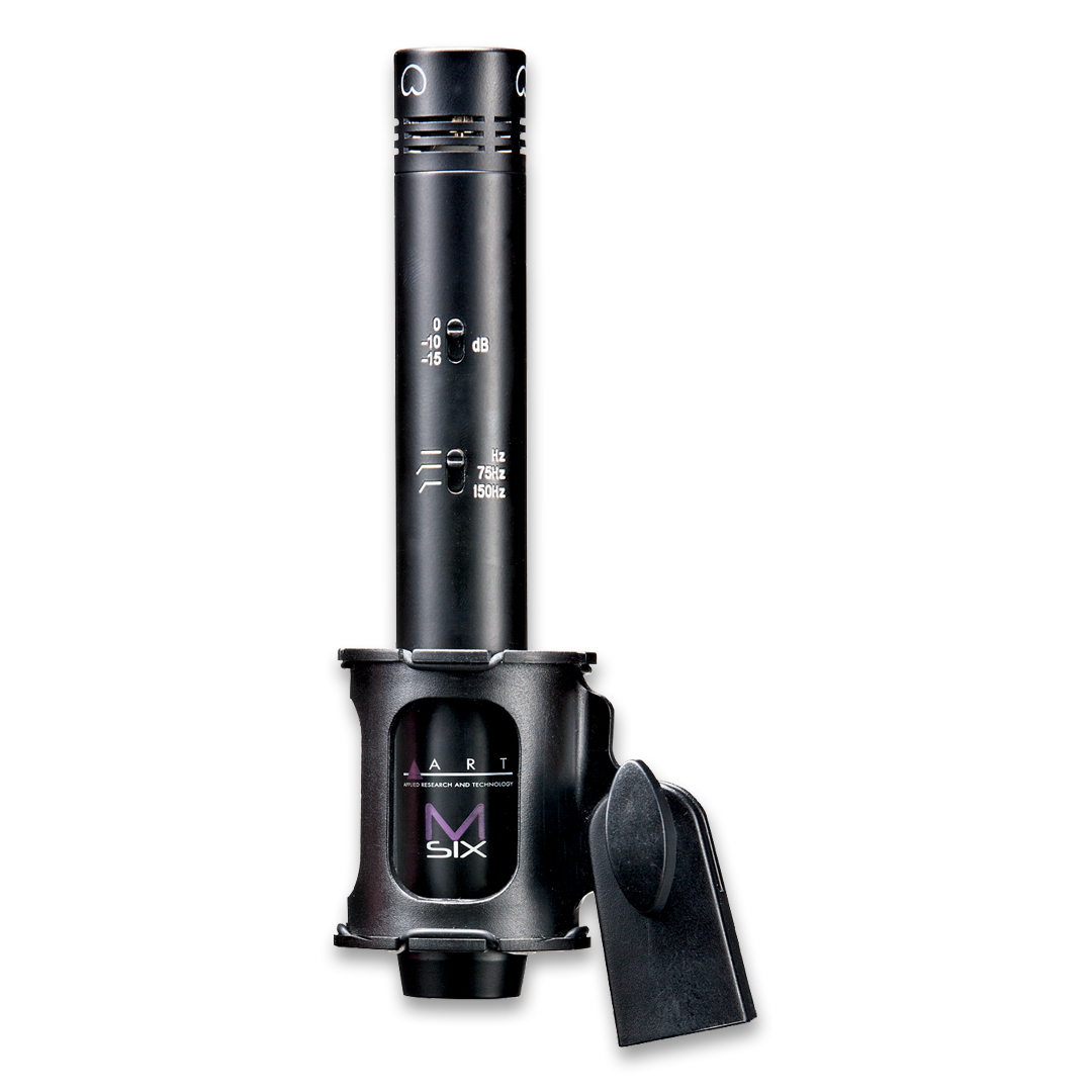ART M-Six Stereo package contains a matched pair of ART high performance M-Six Pencil Condenser microphones. Ideal for capturing any stereo source with precision and accuracy, the M-Six has three position pad (at 0, -10 and -15dB) and three position -12dB /octave high pass filter (flat, 75Hz or 150Hz) ensures added flexibility when tracking critical sources. An ultra compact proprietary shockmount ensures maximum isolation while holding the M-Six securely over the source. The rugged flat-black powder coat finish guarantees the ART M-Six keeps a low profile when used in live and broadcast applications.