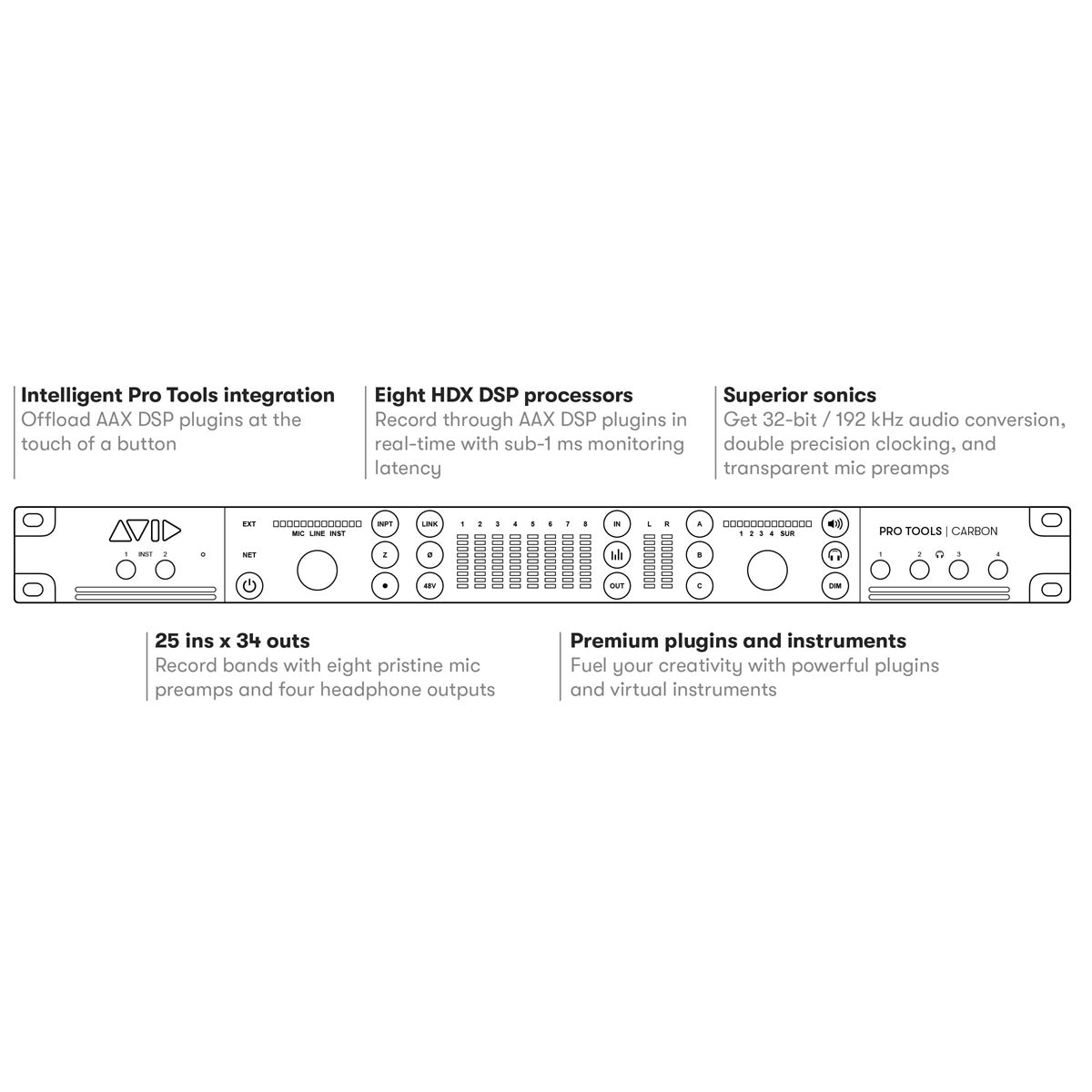 With superior sound quality and intelligent software integration, Pro Tools | Carbon removes barriers to creativity, so you can bring out the best in your performance and capture it beautifully. Whether using a single interface or a Carbon Expanded system with Pro Tools | Carbon Pre, you can bring the power and sound of our flagship Pro Tools | HDX system anywhere you want to record.