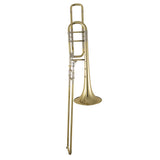 The Bach 50BO single rotor bass trombone features an 9-1/2" one-piece hand-hammered yellow brass bell that has defined the symphonic sound for generations. The .562" large bore combined with the open wrap F attachment offers outstanding clarity and projection with less resistance. The chrome plated nickel silver inner handslide tubes provide the ideal surface for smooth and quick handslide action. The clear lacquer finish adds a subtle warmth to the sound overall. The Bach 50BO professional bass trombone is ideal for both symphonic and solo performance.
