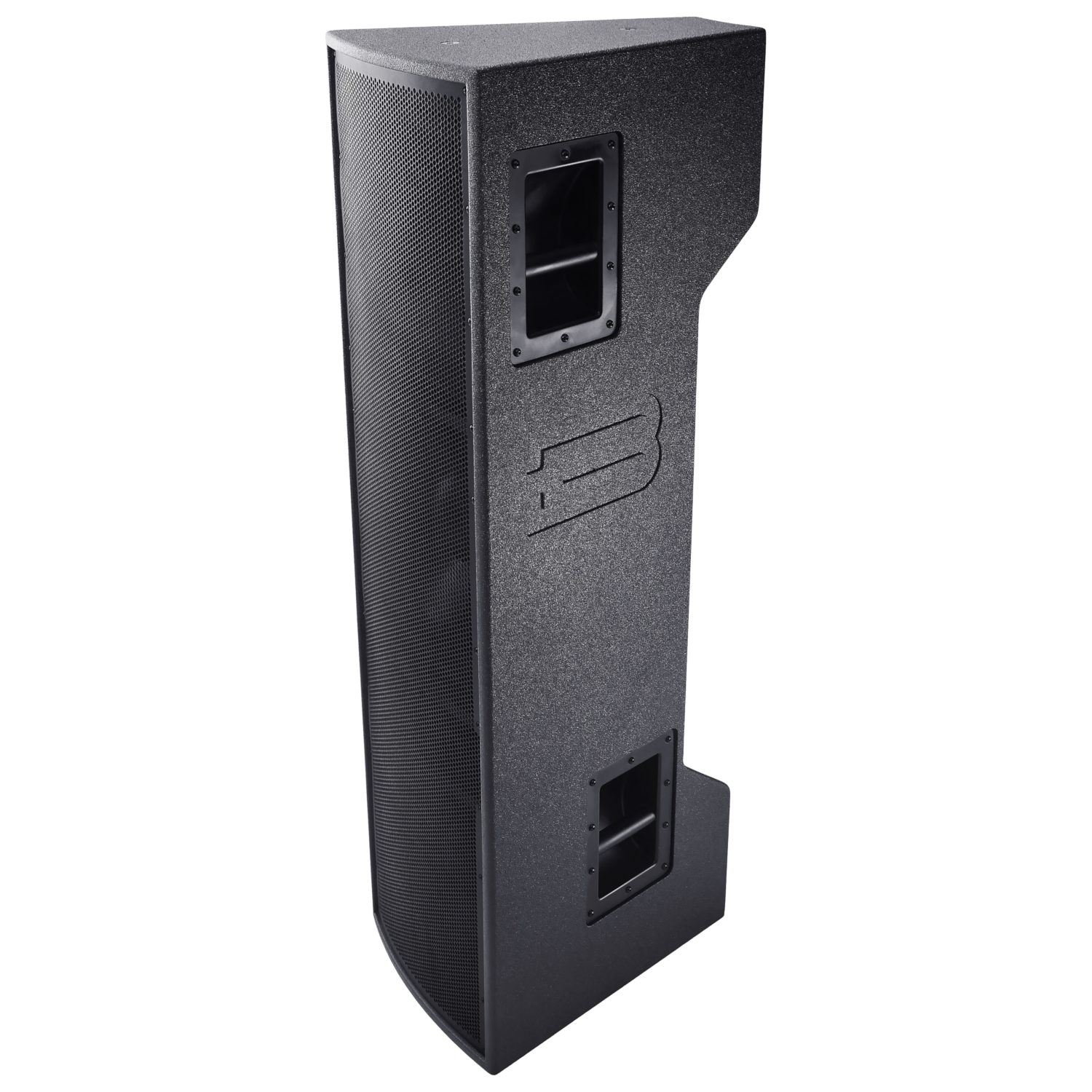 - Vented cabinet that features two 12-inch woofers and a 1.4-inch throat, horn-loaded compression driver
