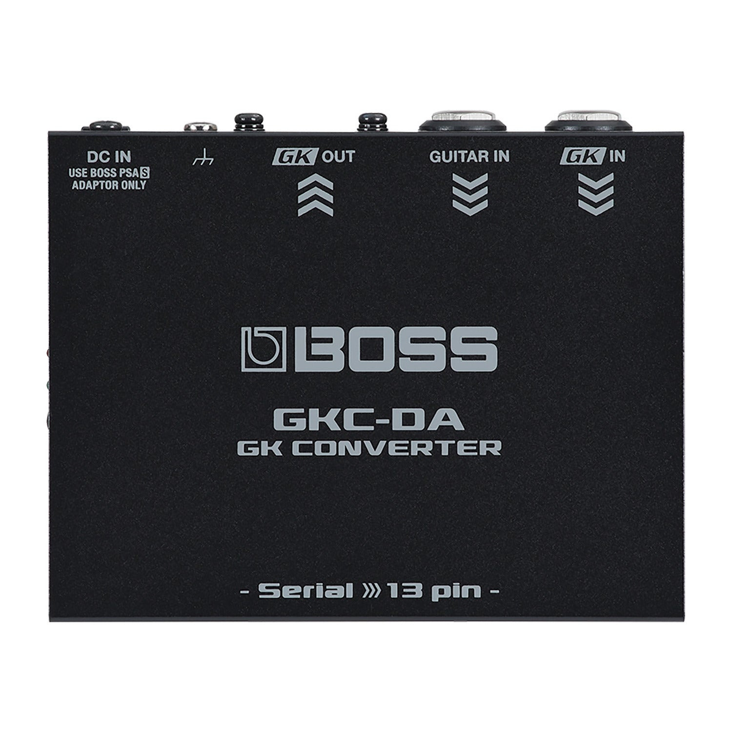 The latest BOSS guitar synthesizer products feature the Serial GK digital interface, a newly developed connection method that delivers evolved performance over the analog 13-pin GK interface used in earlier BOSS and Roland guitar synth and modeling products. The GKC-DA GK Converter allows you to drive a 13-pin GK device such as the BOSS SY-1000 or GP-10 using the Serial GK output on a GK-5 or GK-5B Divided Pickup or the GM-800 Guitar Synthesizer.