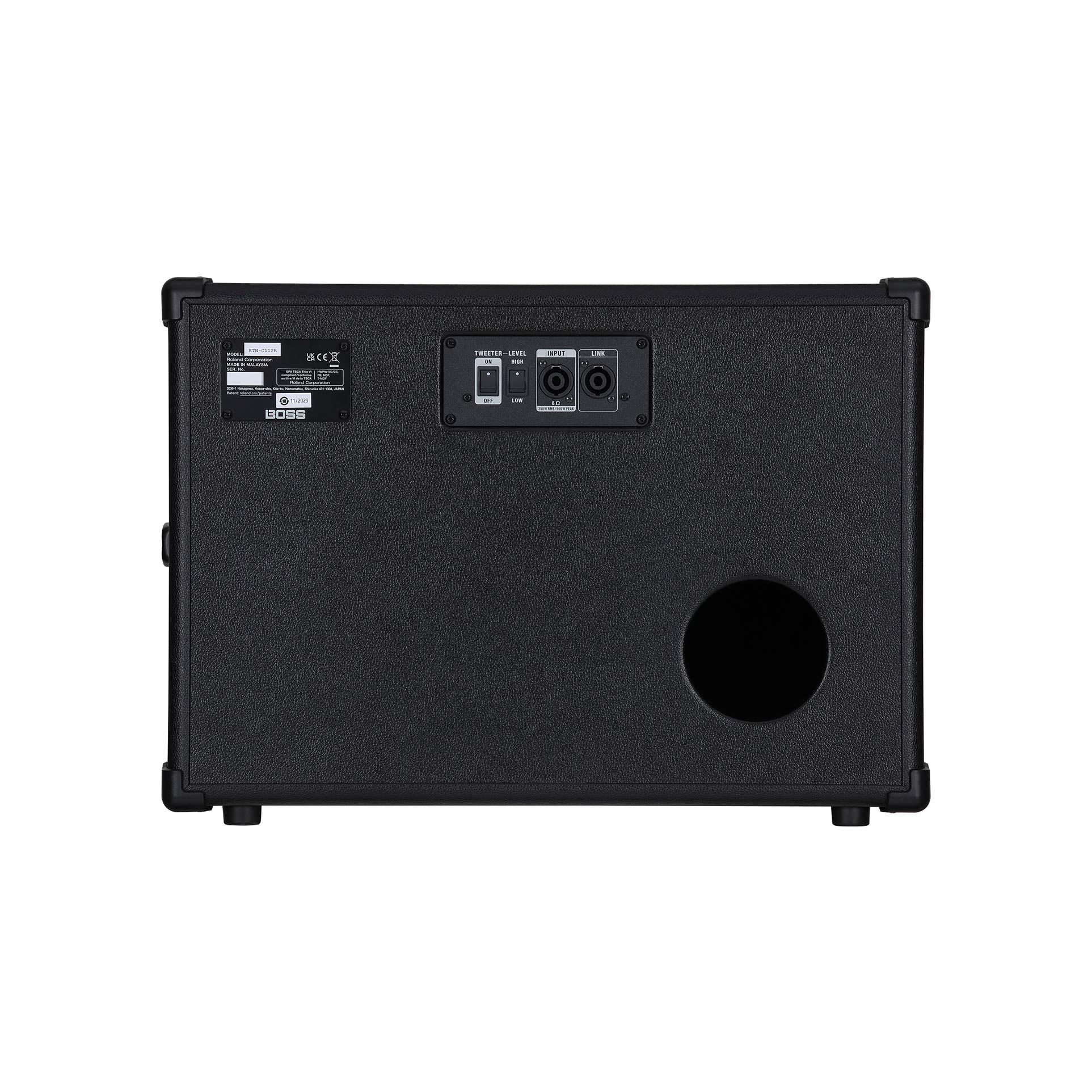 The Katana Cabinet 112 Bass features a two-way design with a 12-inch woofer and a high-frequency tweeter. It comes loaded with an Eminence Neodymium Series woofer, a highly regarded driver with powerful sound and reduced weight. Switches on the rear panel allow the tweeter to be bypassed or set to two preset levels.
