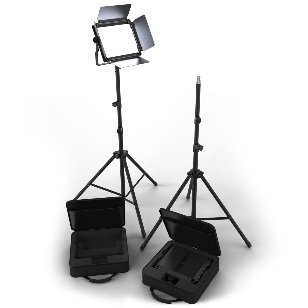 Cast Panel Pack is a complete lighting solution for vlogging or any other on-camera situation. Cast Panels feature built-in color temperature presets that make adjustments painless. Separate control of warm and cool LEDs allows fine tuning to whatever color temperature your production needs. An included removable filter widens and softens light output and because the Cast Panels are battery-operated, you can set the lights anywhere with optional battery packs (sold separately). Cast Panel Pack comes with 2 light fixtures (with barn doors), 2 tripods, 2 carry bags, and 2 external power supplies.