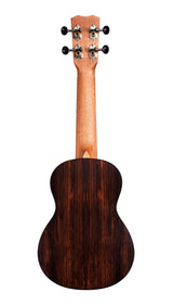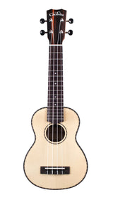 The 21 Series applies the most popular guitar soundboard wood (solid spruce) with an exotic striped ebony back and sides. The aesthetic is subtle and refined with a satin finish, timeless hand-inlaid wooden rope rosette, and matching purfling. Available in soprano (21S), concert (21C), tenor (21T), tenor cutaway acoustic-electric (21T-CE), and baritone (21B).