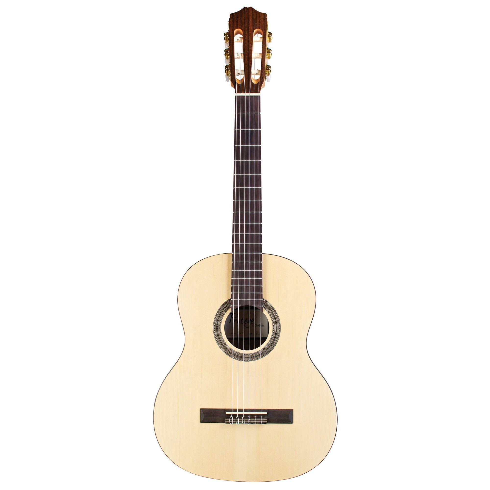 The Protégé by Córdoba C1M 1/2 is the perfect nylon string guitar for students of all levels, and is perfectly at home in the classroom or at home. Comfortable and easy to play, it's a great first guitar at an affordable price. Every Protégé C1M is built with a spruce top, mahogany back and sides, a comfortable, slim neck profile, traditional mosaic rosette, and a matte polyurethane finish. Like all Córdoba instruments, C1M models feature premium Savarez strings and an adjustable truss rod for lifetime neck stability.