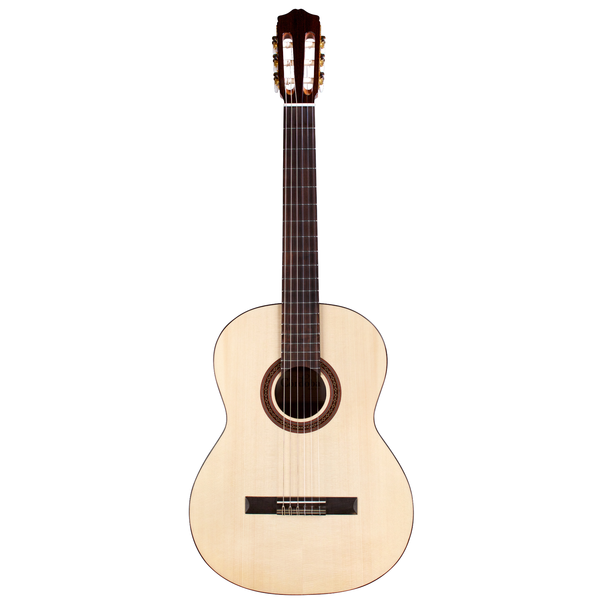 Based on Córdoba's flagship C5, the C5 Spruce adds a new option to a fan favorite. Perfect as a first nylon-string guitar, this lightweight model is built with a solid Engelmann spruce top and mahogany back and sides to produce a clear, powerful tone with beautiful sustain. Handmade in the traditional Spanish style, the C5's carved headstock, hand-inlaid wood rosette, Pau Ferro binding, Savarez strings, and glossy PU finish result in a guitar that truly stands out from all other entry-level options. A lightweight adjustable truss rod is built into the neck for stability.