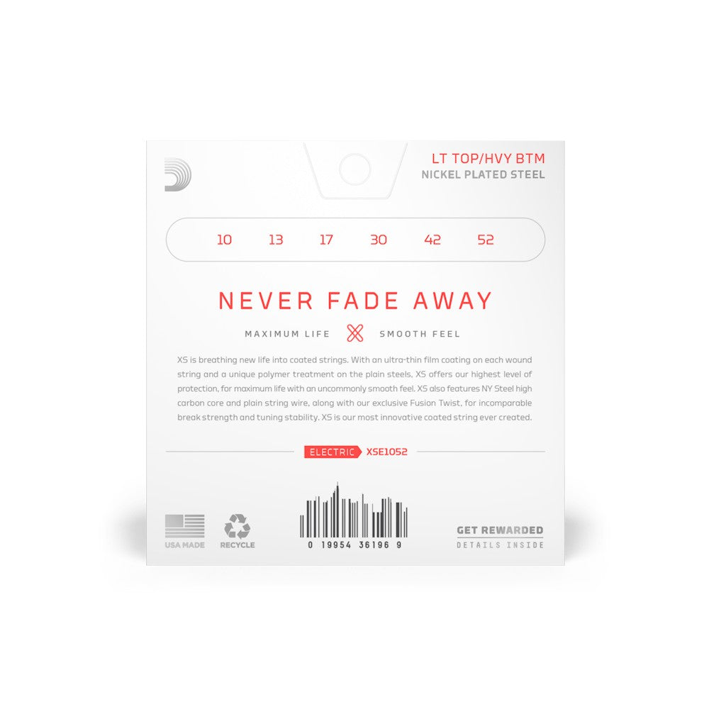 D'Addario XS XSE1052 Light Top/Heavy Bottom Coated Electric Guitar Strings - 10-52