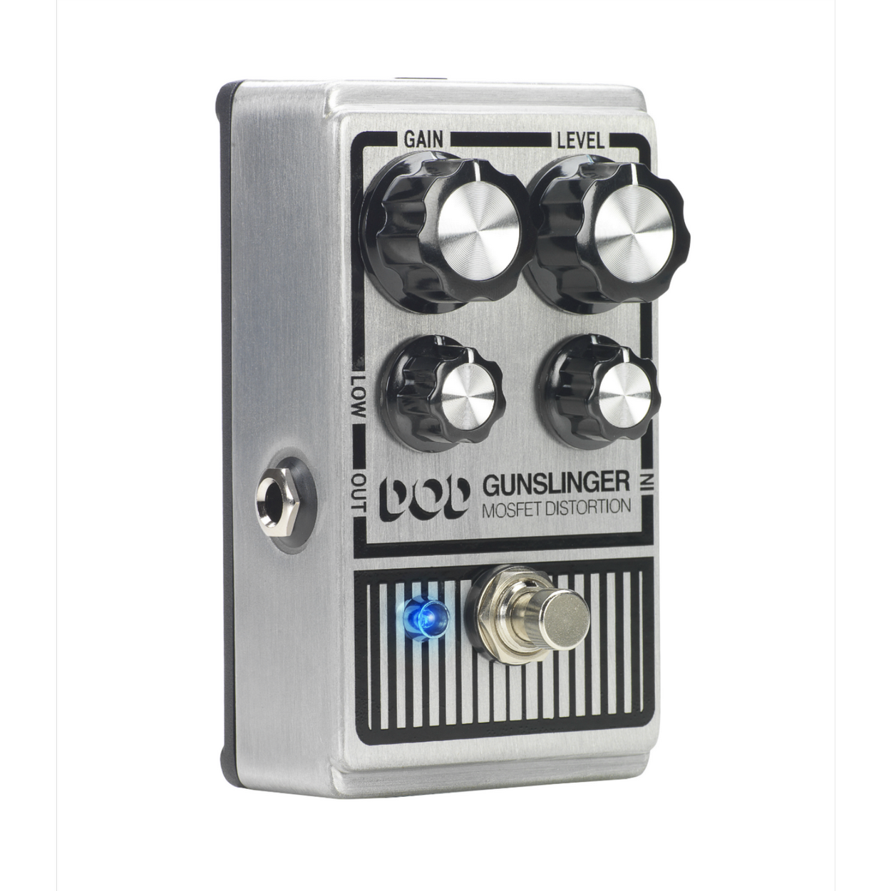 From explosive chord work to high velocity leads, the new DOD Gunslinger Mosfet Distortion has the touch sensitivity, string-separation and saturation to do all your dirty work. The Gunslinger packs features like separate Low and High tone controls, a wide range of gain, tons of output and your choice of 9 or 18v operation to keep you on target and in control. The Gunslinger’s brushed-metal housing looks as tough as it sounds and its true bypass circuitry keeps your tone pristine.