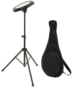 Ideal for beginning and professional drummers alike. This complete package will withstand even the most demanding practice sessions. The adjustable stand allows use while standing or sitting and features sturdy tubular construction. The tilting pad itself provides a realistic feel and bounce but is quiet enough to be used almost anywhere. A durable gig bag is included, designed to carry the pad, stand and your favorite sticks and accessories.