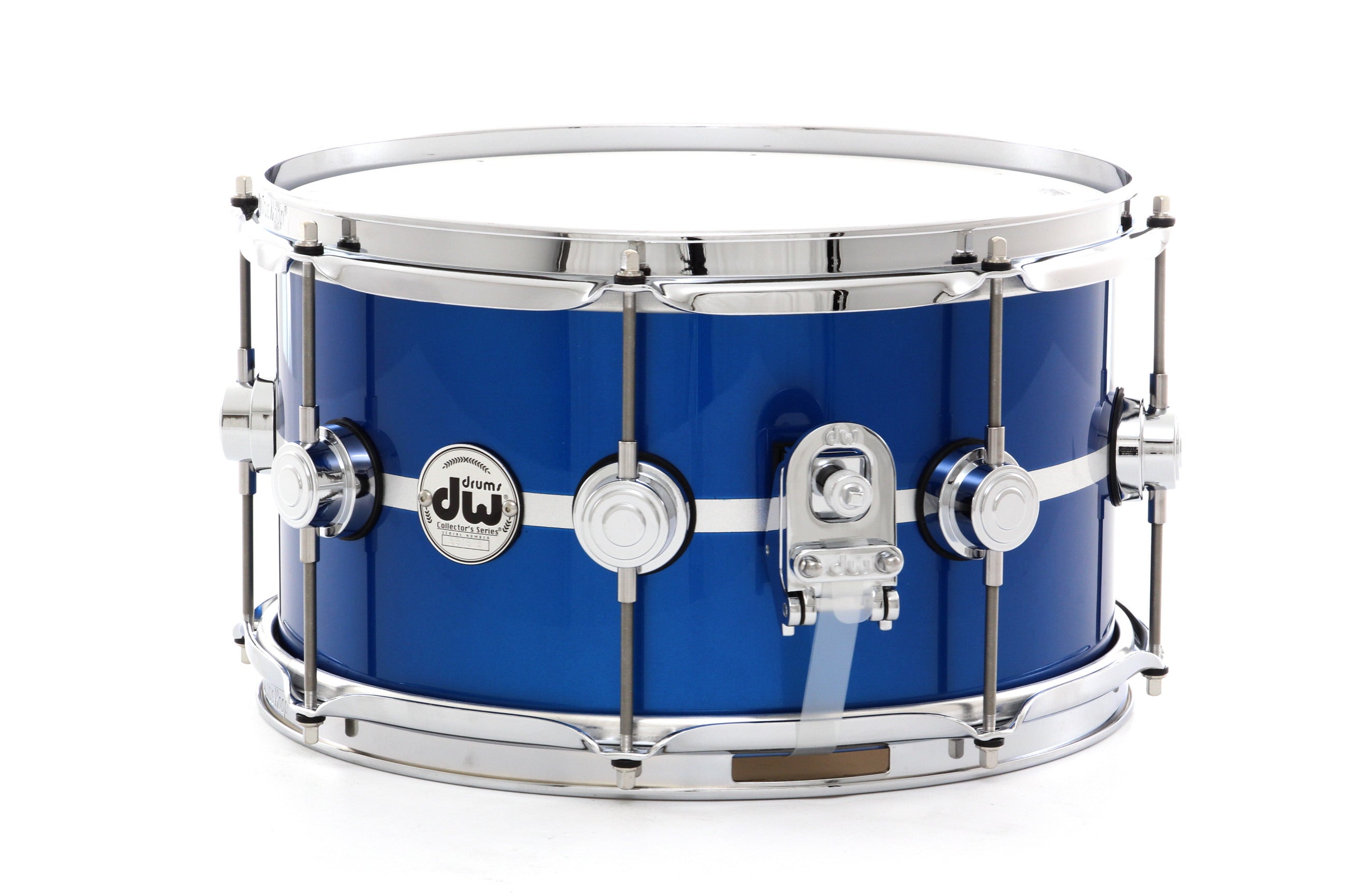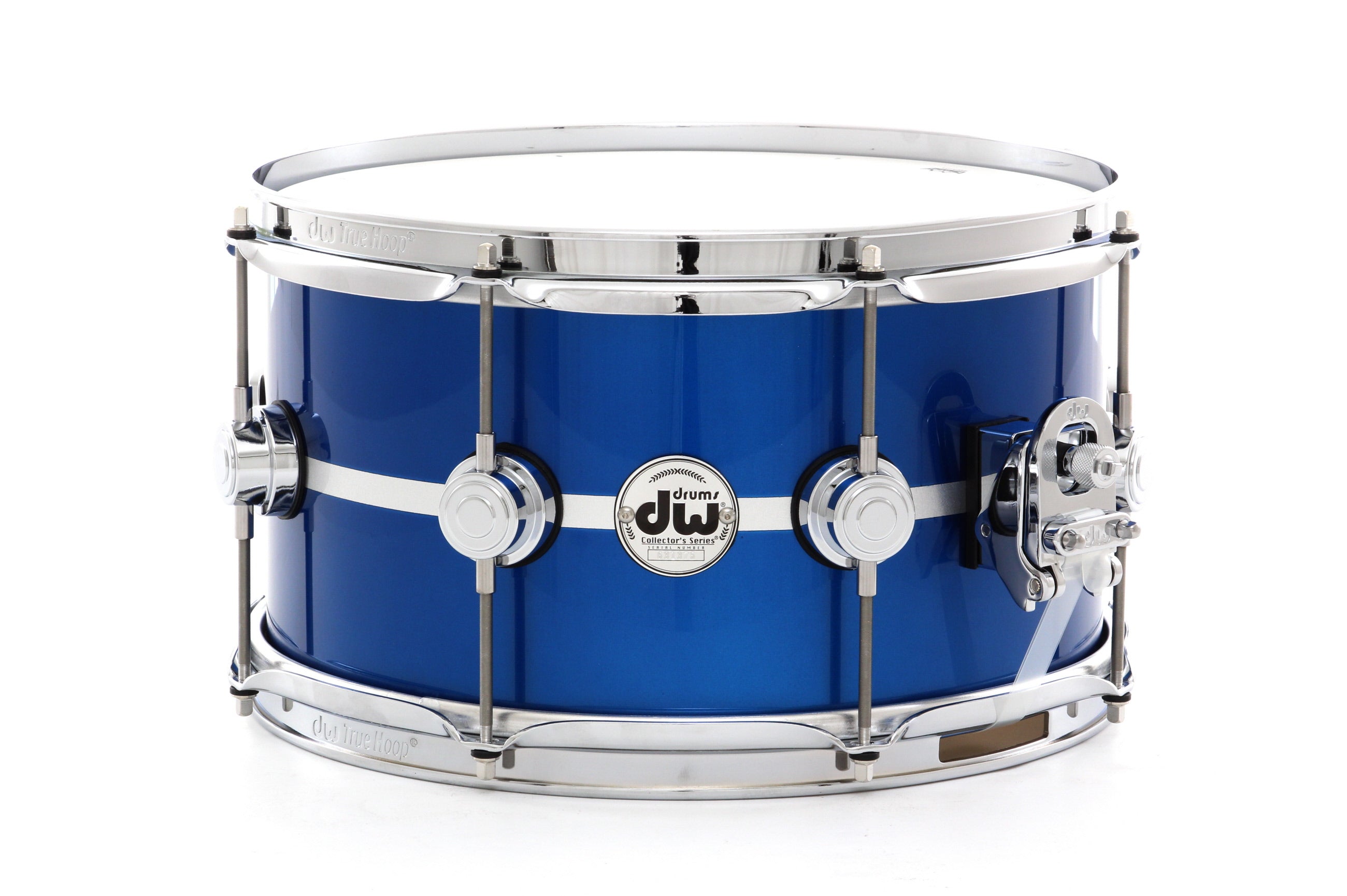 DW 13" x 7" Collector's Cherry Exotic Snare Drum - Metallic Royal Blue Lacquer With Silver Pinstripe