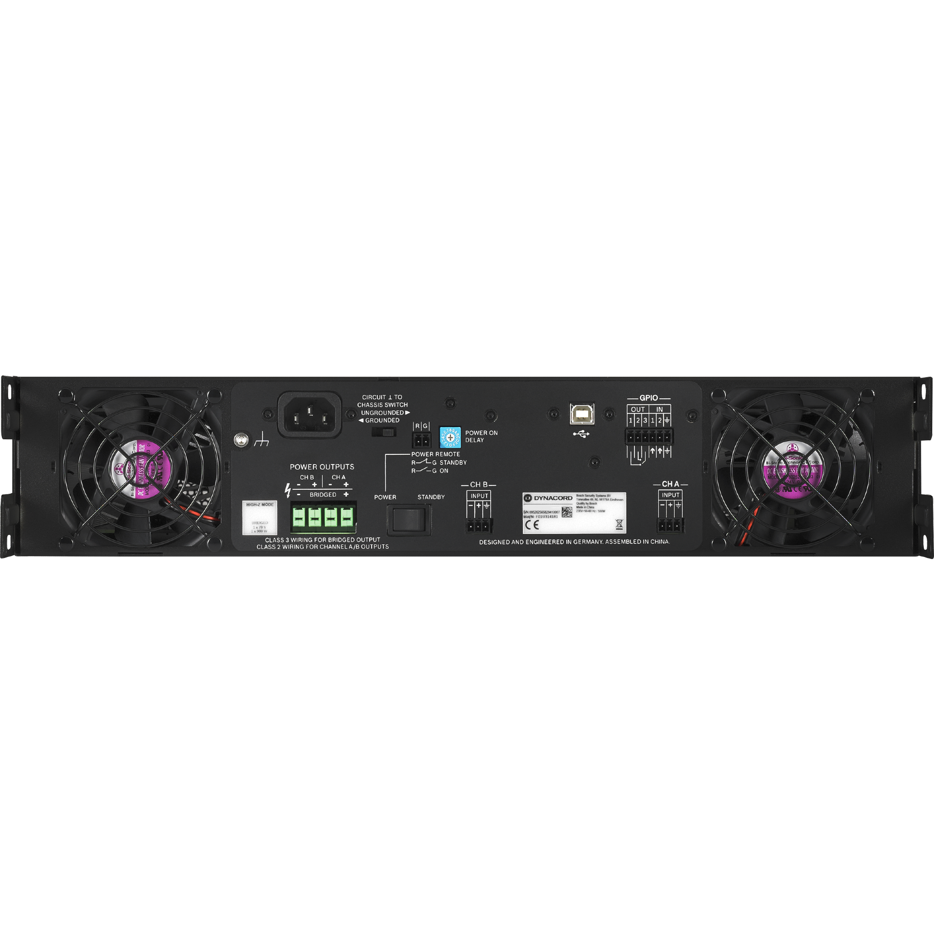 Dynacord C Series amplifiers are dedicated installation DSP amplifiers optimized for 24/7 operation. Integrated digital signal processing provides access to professional speaker processing with FIR Drive technology. This C Series amplifier utilizes a Class A/B topology, which provide market leading acoustic performance and reliability. The connectivity is optimized for the needs of fixed install applications. For low cost of ownership a power saving standby mode is available. A front panel LC display allows local control and supervision of the amplifier. An intuitive system control software allows fast system setup, flexible system control and comprehensive supervision.