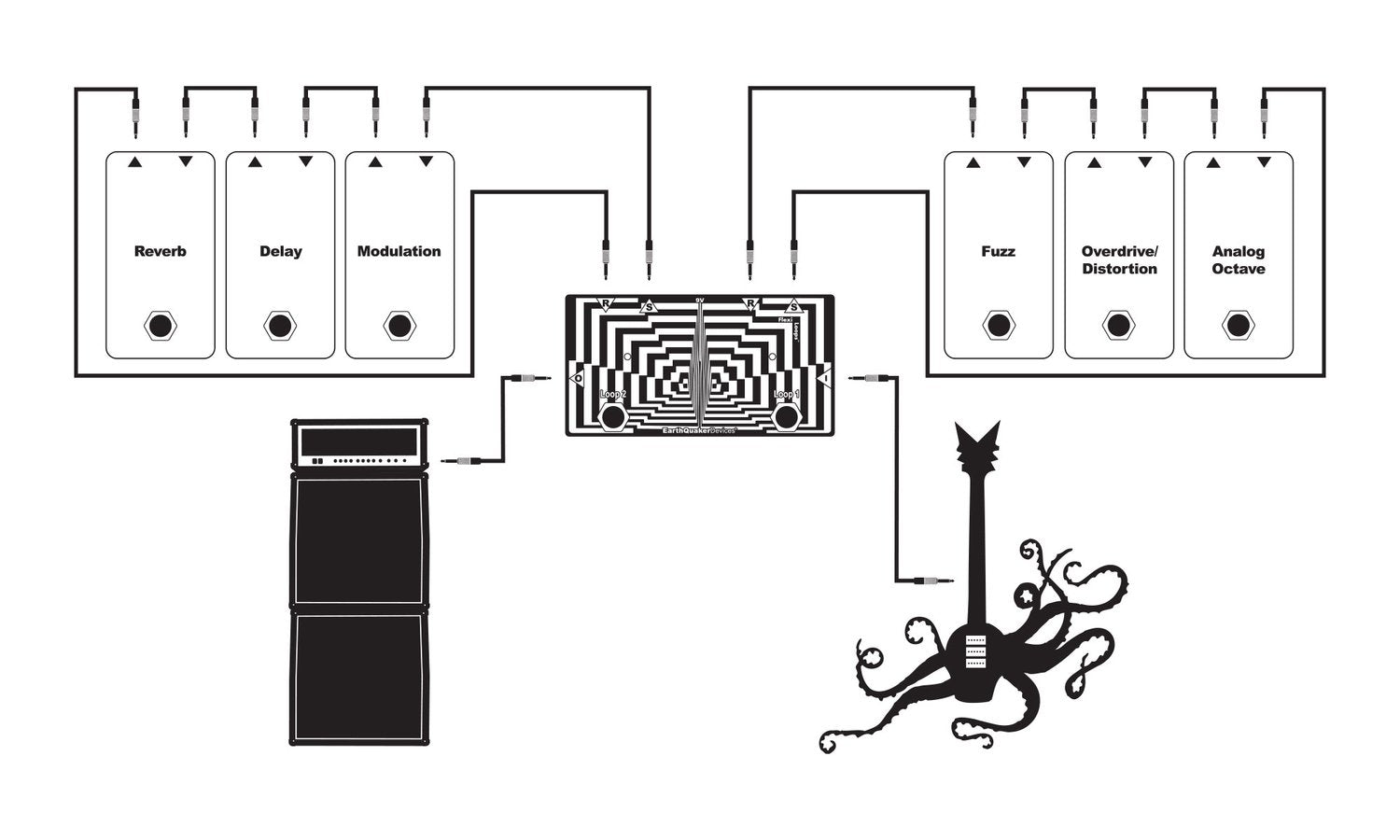 Using an effect loop switcher on your pedalboard allows you to easily remove all your effects from the signal path creating a path of least resistance to maintain full tonal integrity when they aren’t in use. Using a dual effect loop with Flexi-Switch® Technology allows you to create two distinct loops of effects and then introduce or remove them all on the fly with ease!