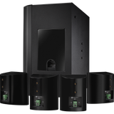 Architecture and Engineering Specifications: The loudspeaker system shall be a two-way design consisting of a separate subwoofer containing one 8-inch (200 mm) low-frequency transducer, (4) satellites consisting of 2 inch (50 mm) high-frequency transducers, and frequency-dividing network installed in the vented subwoofer enclosure. All input and output signal connections shall be made at the subwoofer. All signal connections for the subwoofer and satellite speakers shall be made using phoenix style connectors.