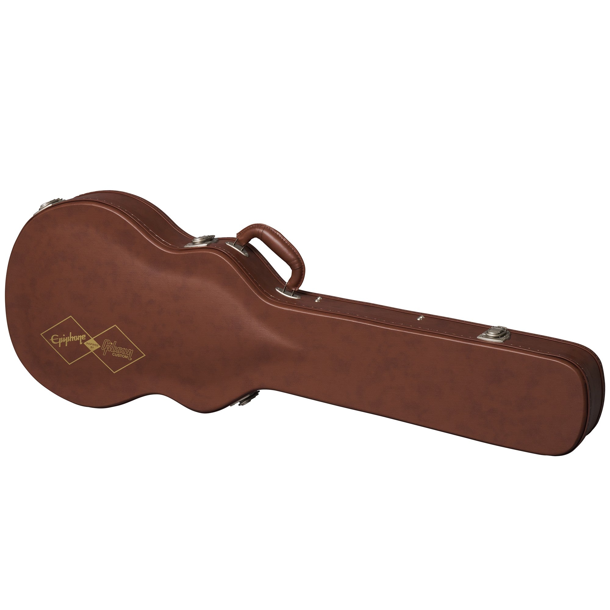 - Case: Hardshell with Brown Exterior, Pink Interior, and Inspired by Gibson Custom Graphics