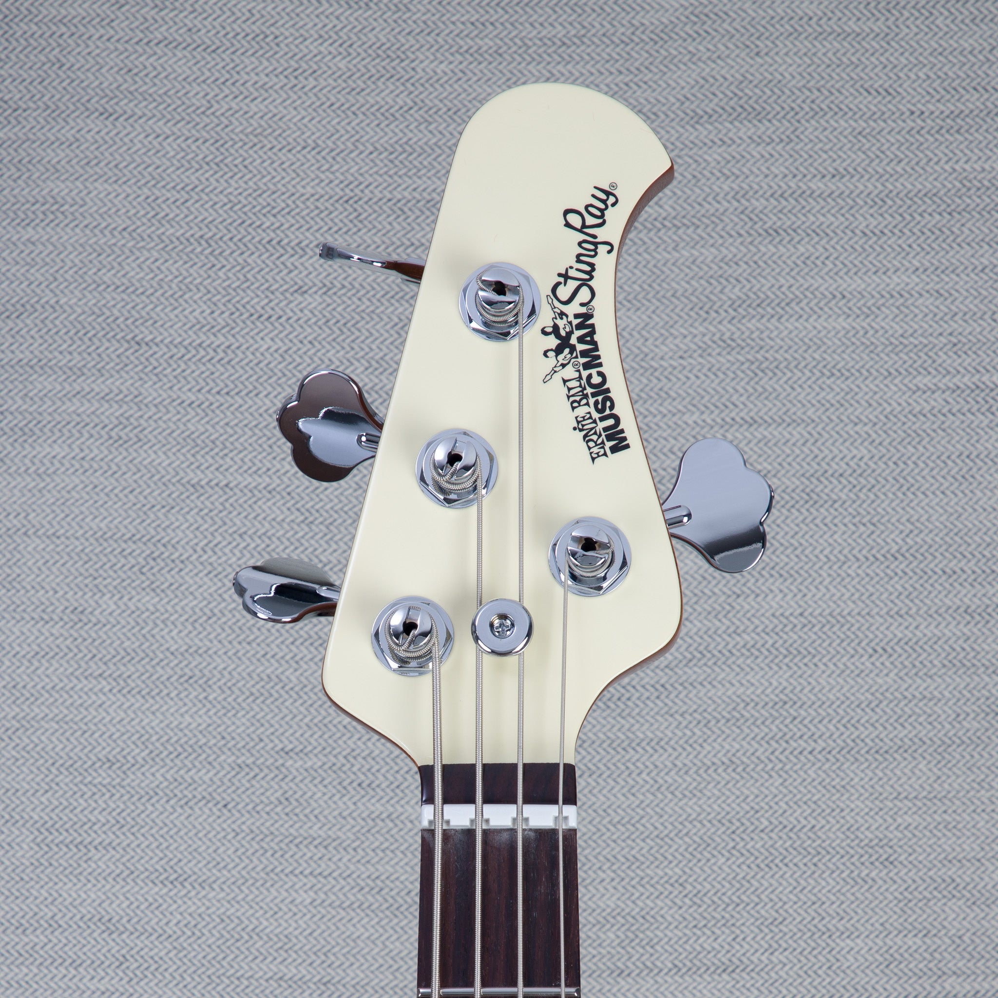 - Bridge: Vintage Music Man® top loaded chrome plated, steel bridge plate with vintage nickel plated steel saddles