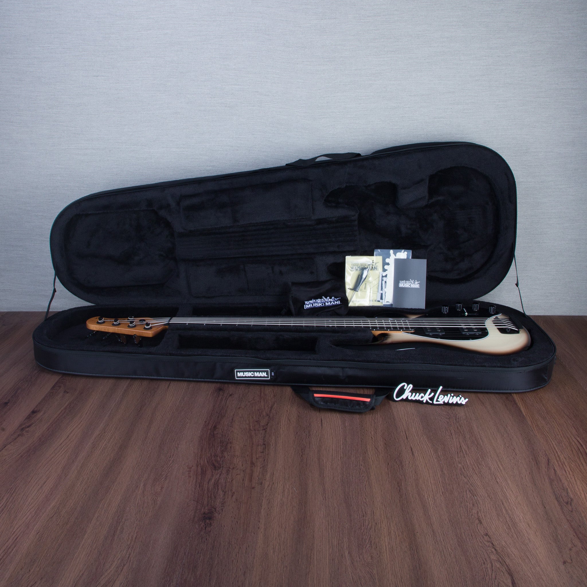- Bridge: Vintage Music Man® top loaded chrome plated, steel bridge plate with vintage nickel plated steel saddles