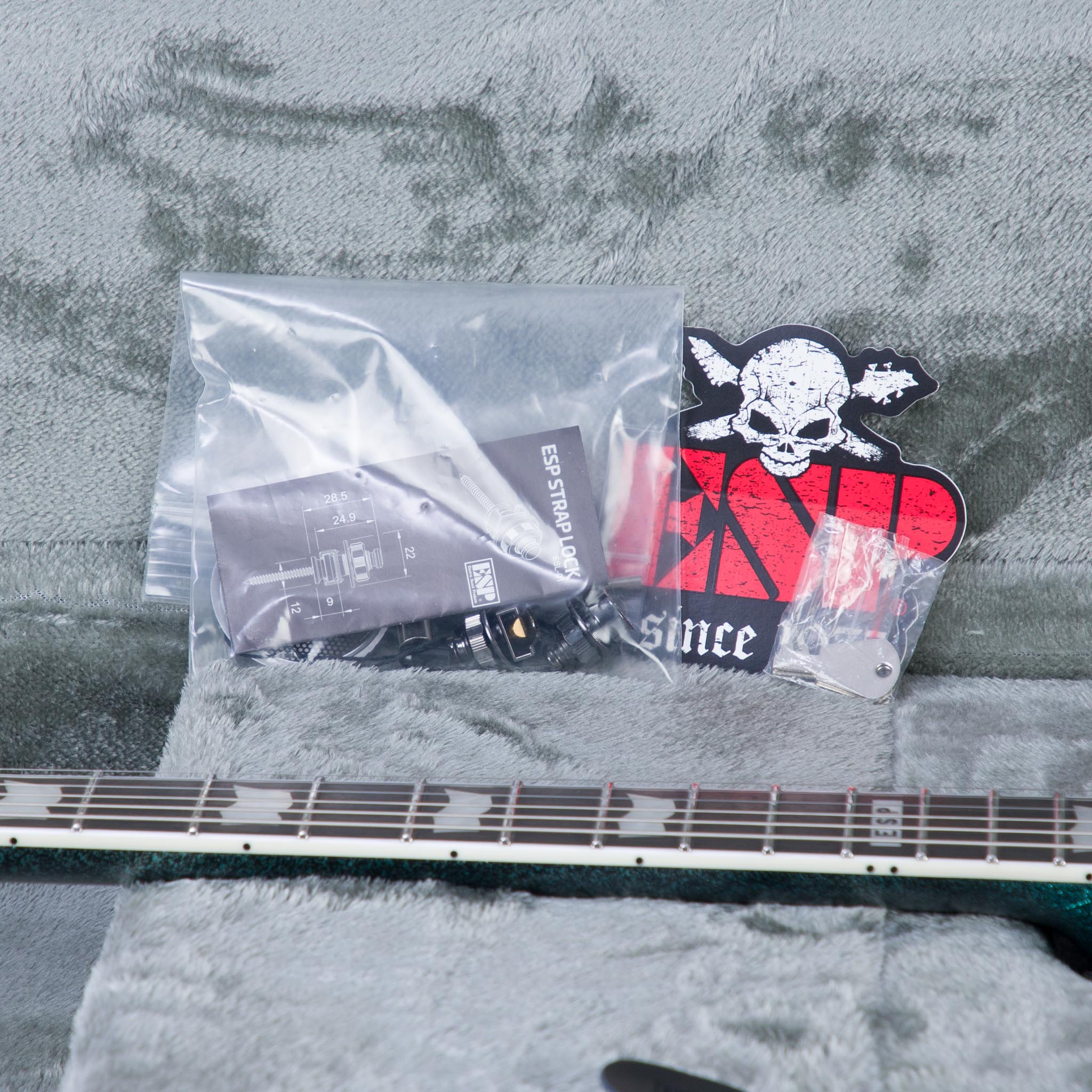 Formerly called “ESP Standard”, all ESP E-II instruments are created at our ESP factory in Tokyo, Japan, and are designed for professional players who accept no compromises in tone, feel, or reliability for their guitars and basses. The E-II Eclipse DB offers the sublime look of an outstanding Granite Sparkle finish with prominent white binding on the both sides of the body as well as the neck and headstock. This guitar features set-neck construction of its maple-capped mahogany body and thin U-shaped mahogany neck with ebony fingerboard (and satin finish on the back of the neck for extra smooth playing feel). Next, add high-end components like a bone nut, ESP strap locks, Gotoh locking tuners, and a Gotoh TOM bridge and tailpiece. Then get the sound you want from a set of EMG 66TW (neck) and EMG 57TW (bridge) active pickups, with coil spitting available on each pickup via push-pull controls. Ready for serious professional use on stage or in the studio, the E-II Eclipse DB includes an ESP hardshell form-fitting case.
