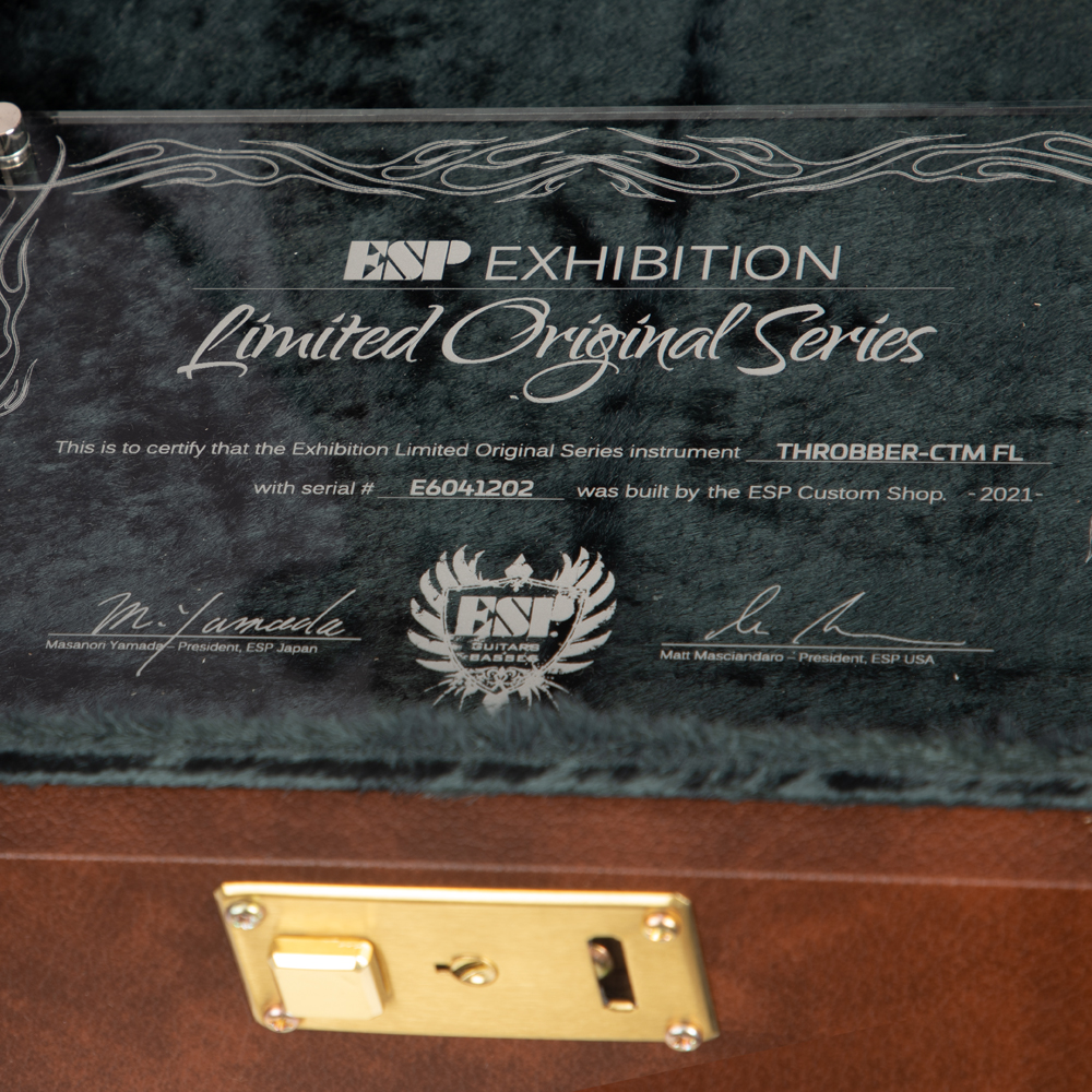 Experience The Peak of Artful Guitar Craftsmanship - The ESP 2021 Exhibition Limited Throbber CTM FL Electric Guitar In A Natural See Thru Brown Finish