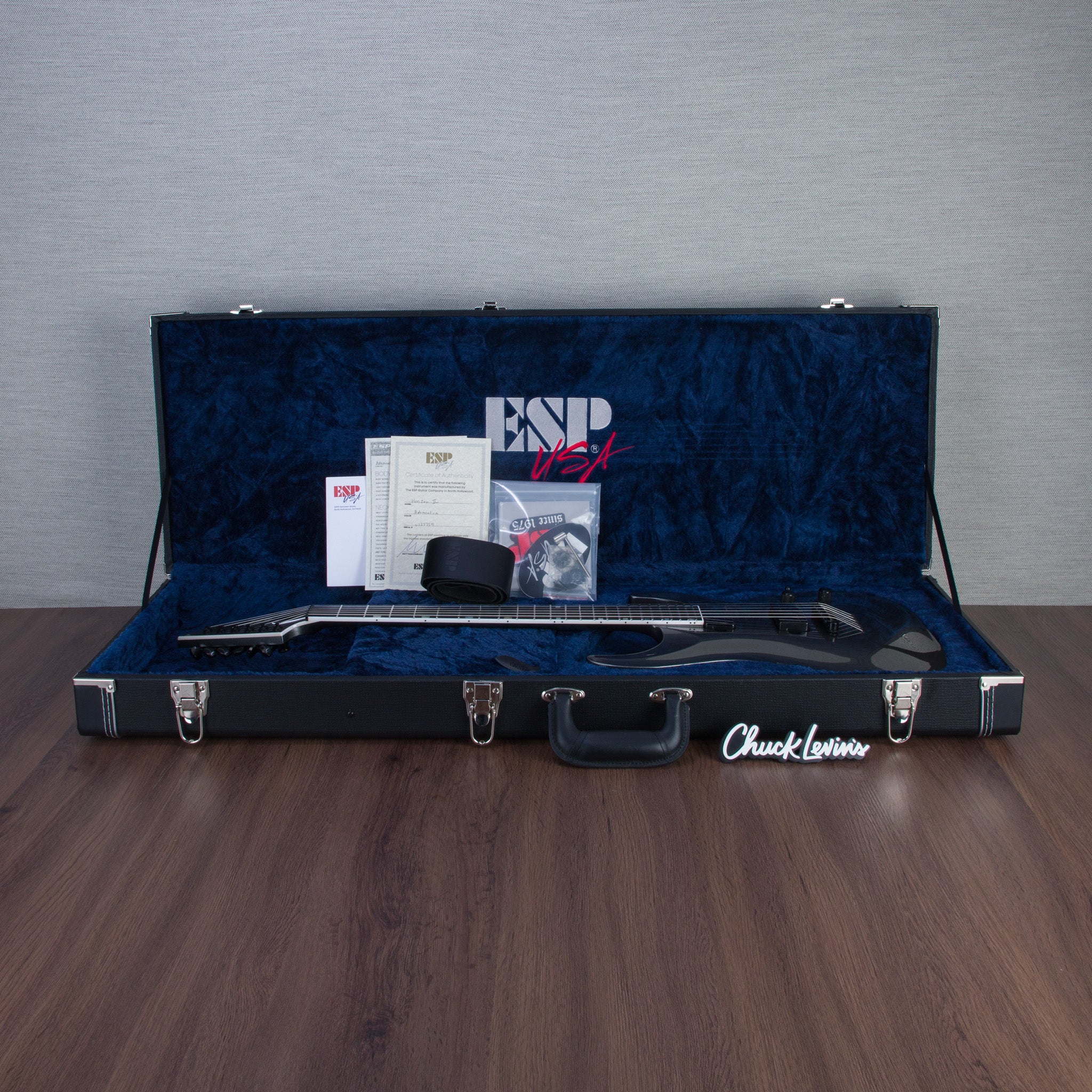 The USA Horizon-II Black Adamantium includes a custom ESP USA form-fitting hardshell case, and an official Certificate of Authenticity from ESP.