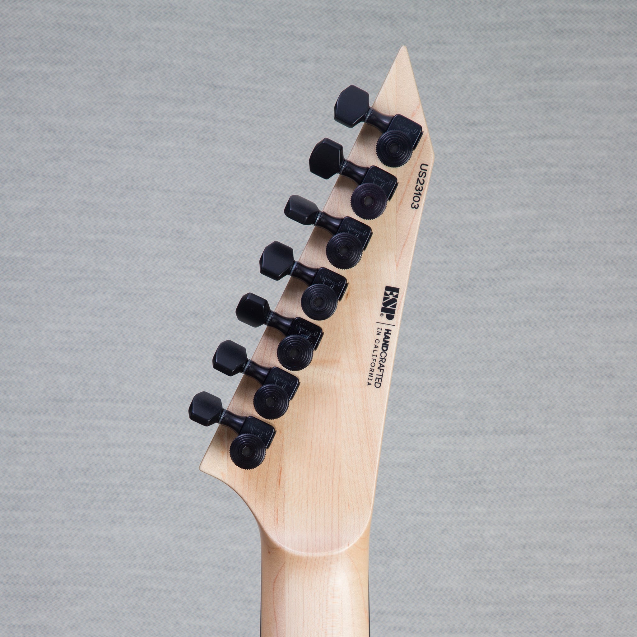 The USA M-7 Hardtail Baritone offers the very best in parts and components, and include 24 extra-jumbo Jescar stainless steel frets, a Hipshot fixed hardtail bridge, a bone nut, Gotoh Magnum Lock tuners, Dunlop Straploks, and your choice of Seymour Duncan Black Winter 7 set, EMG 81-7XH/85-7XH or Fishman Fluence Modern pickup sets, with a push-pull coil split control on the tone knob for passive pickup models. The USA M-7 Hardtail Baritone includes a high-quality ESP USA form-fitting hard shell case.