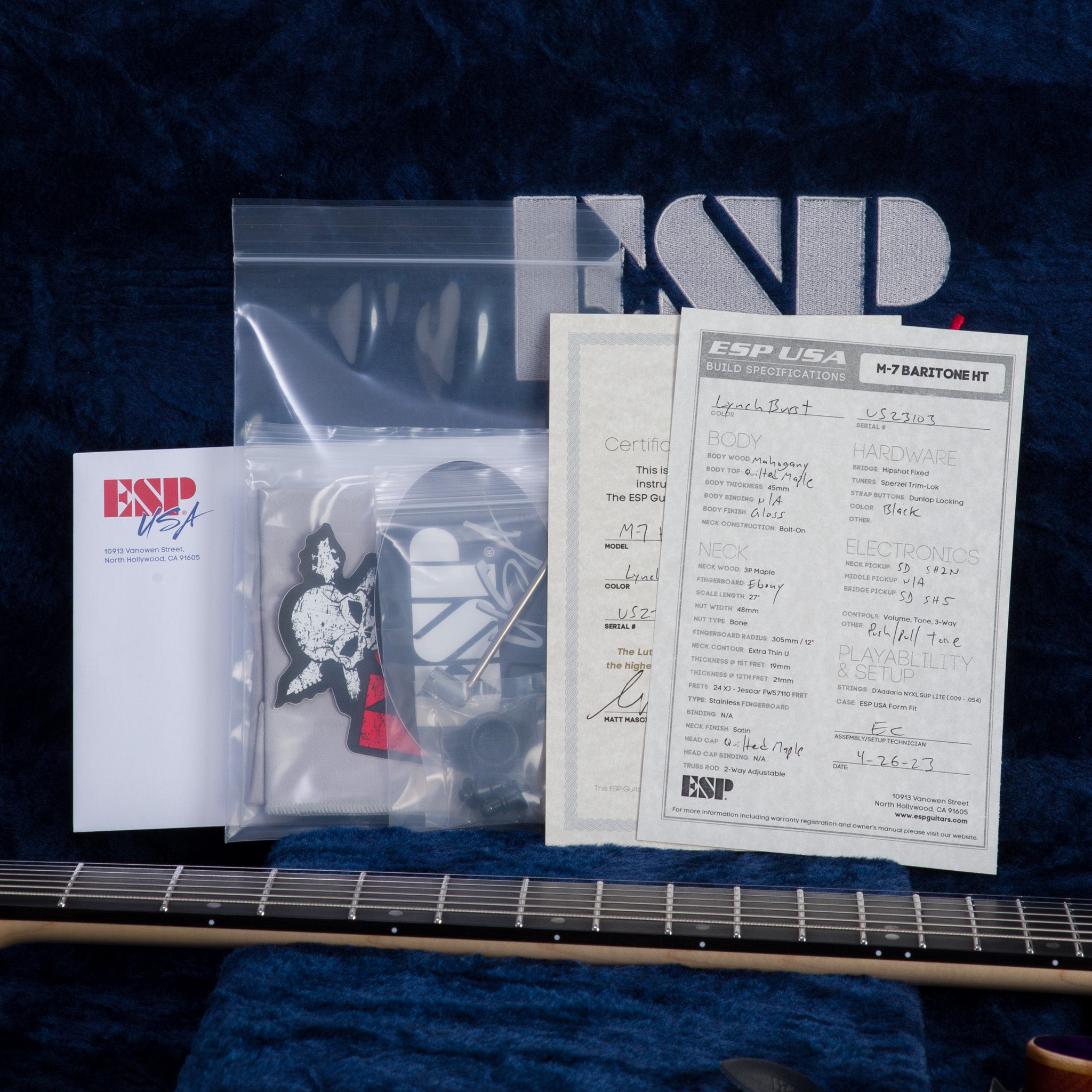 ESP USA M-7 Hardtail Baritone Quilted Maple Electric Guitar - Lynch Burst - #US23103
