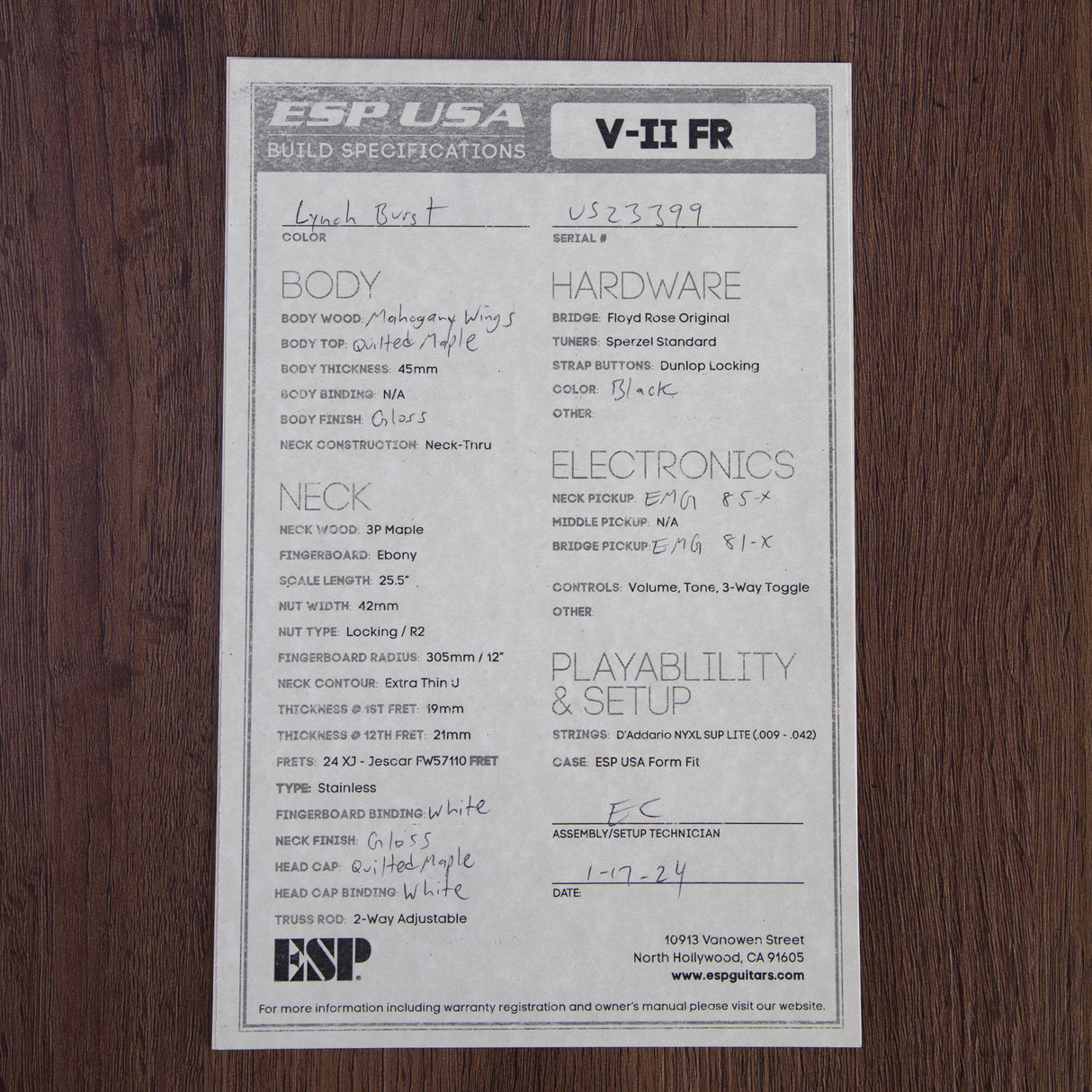 ESP USA V2 QM Electric Guitar - Lynch Burst - #US23399