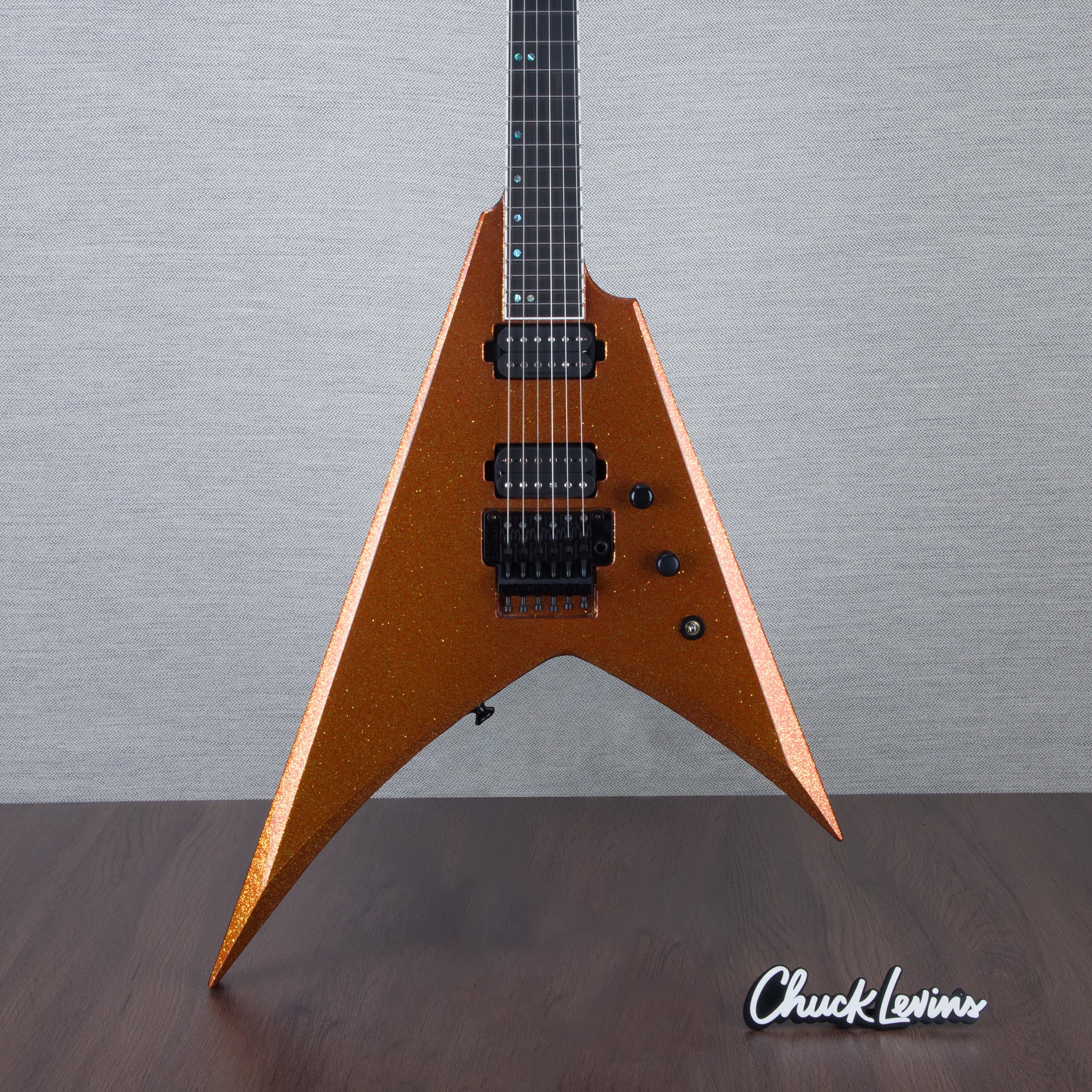 High-Performance Design with Unrivaled Precision and Style - The ESP USA V-II FR Electric Guitar in Rustic Copper Sparkle