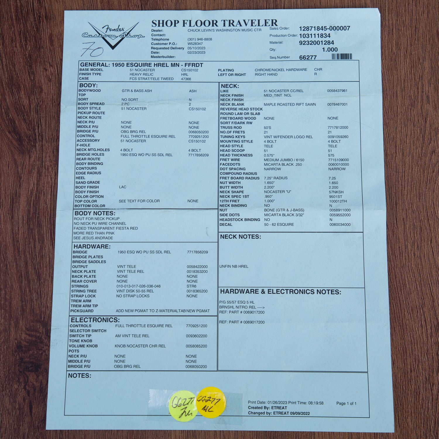 Fender Custom Shop 1950 Esquire Heavy Relic Electric Guitar - Watermelon King - CHUCKSCLUSIVE - #R127213