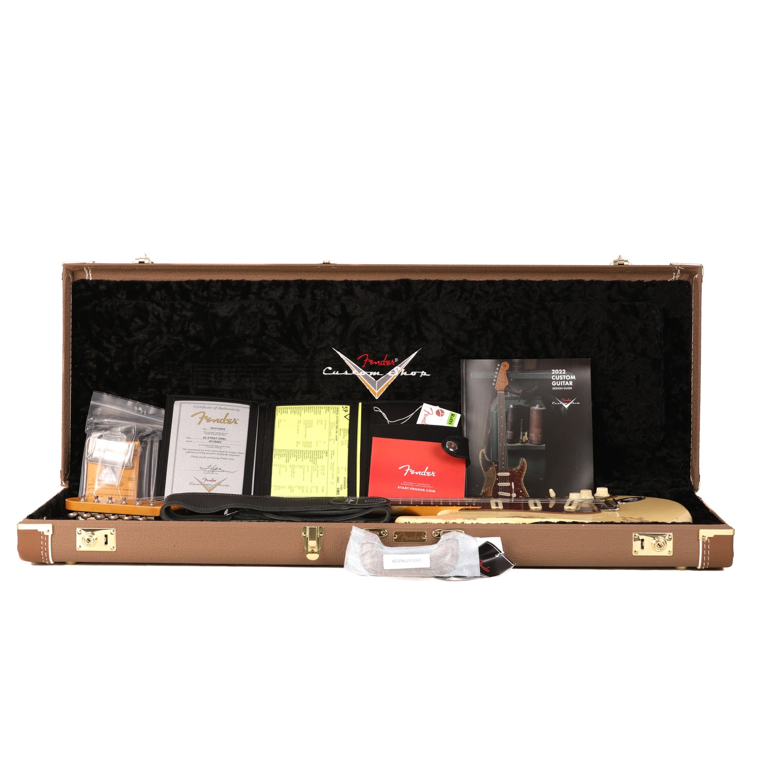 This model has the distinctive combination of appointments for a transitional Stratocaster from late 1962, the rift-sawn maple neck has a classic ’60-style Oval “C” profile and is topped by a 7.25"-radius round-lam rosewood fingerboard with micarta-dot inlays (with wide 12-fret spacing), 21 narrow tall (6105) frets and a bone nut. Three Custom Shop hand-wound ’60 Strat Relic pickups (reverse-wound/reverse-polarity middle pickup for hum cancellation in switch positions 2 and 4) deliver sought-after and dynamically expressive early-’60s Strat® tone, with glassy highs, slight midrange scoop and focused lows.