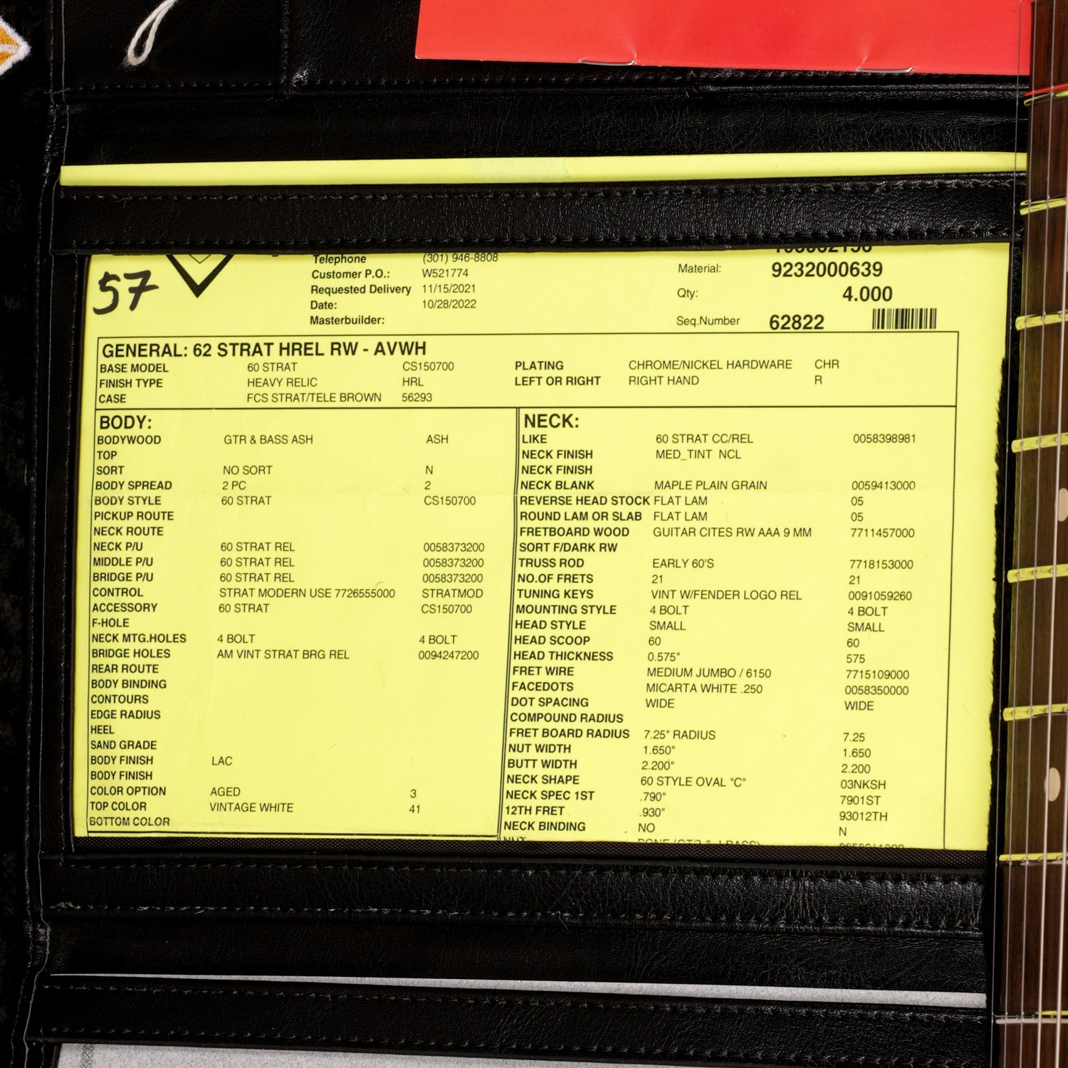 Fender Custom Shop 1962 Stratocaster Heavy Relic Guitar - Aged Vintage White - CHUCKSCLUSIVE - #R119465