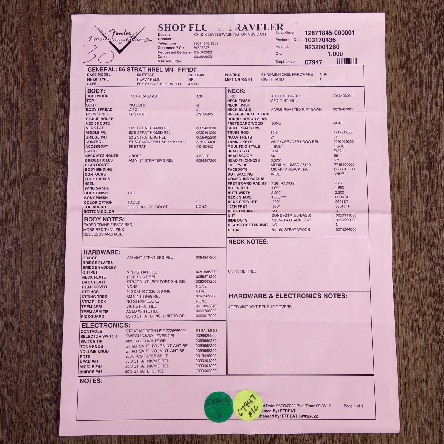 Fender Custom Shop 56 Stratocaster Heavy Relic Electric Guitar - Watermelon King - CHUCKSCLUSIVE - #R130173