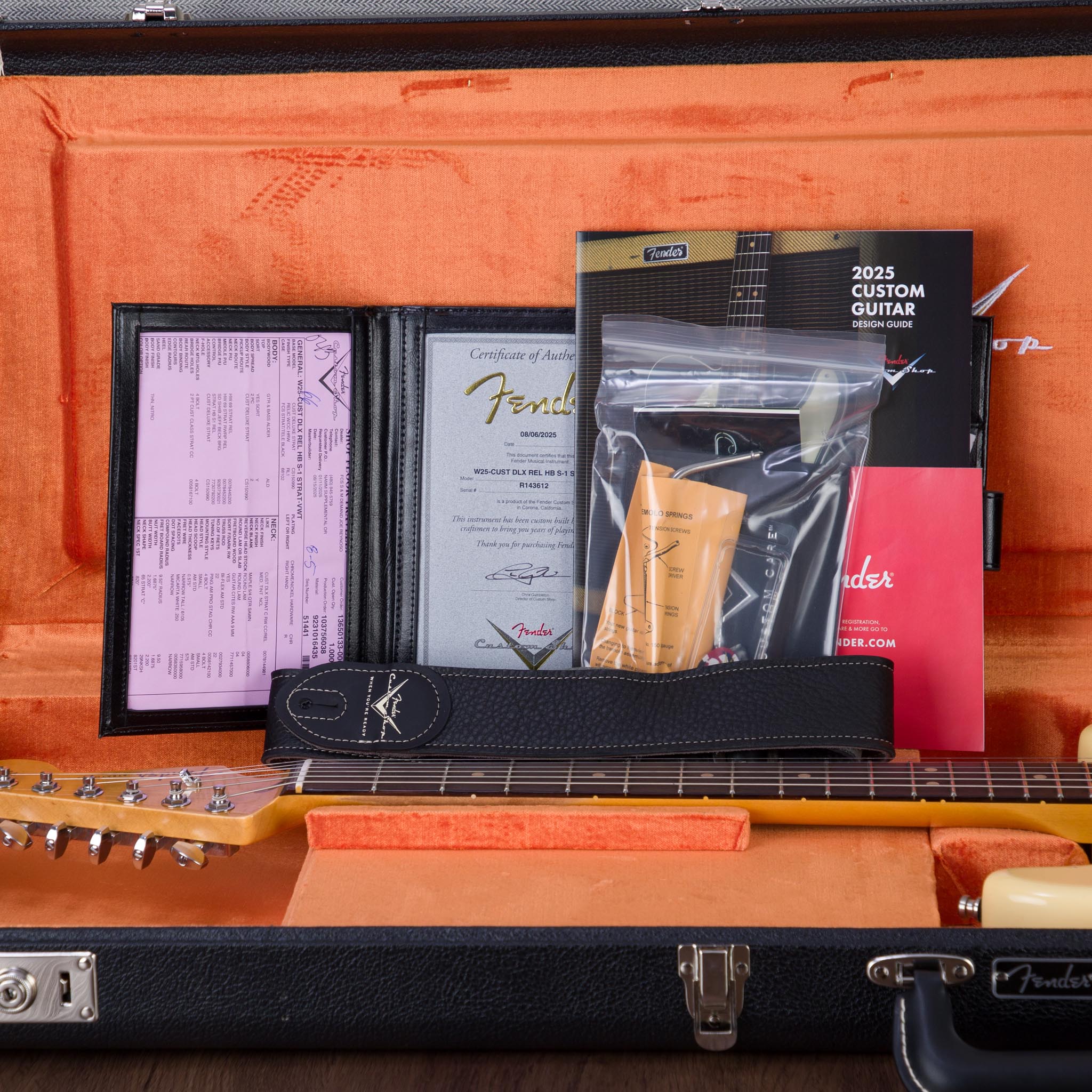 Handcrafted Elegance and Timeless Tone - The Fender Custom Shop Custom Deluxe Stratocaster Electric Guitar in Vintage White