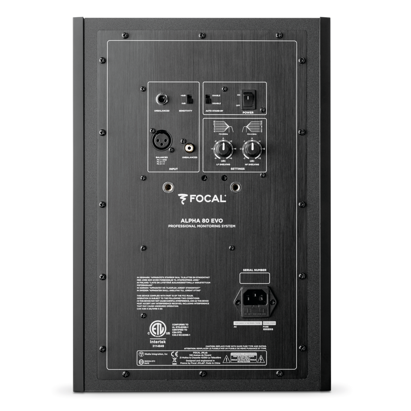 Alpha 80 Evo has a 1 inch (25 mm) aluminum tweeter and a 8-inch (20 cm) woofer with Slatefiber cone developed and manufactured in Focal's workshops in France. This monitor features excellent dynamics and neutrality in its tonal balance. The Alpha 80 Evo will suit perfectly producers seeking for high SPL levels as well as deep low-end extension.