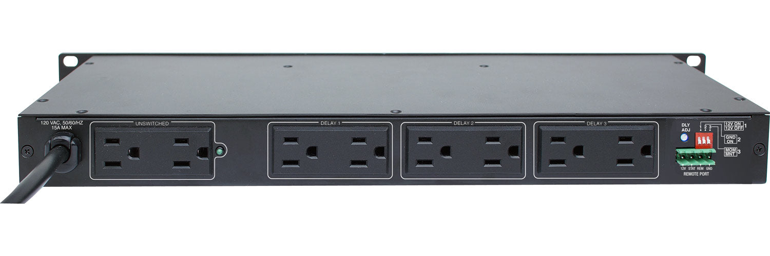 Includes 3 delayed outlet banks - each with 2 outlets - plus 2 unswitched outlets.