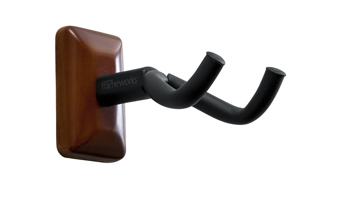 Display Your Instrument With The Style They Deserve With The Gator Frameworks Wall Mounted Guitar Hanger W/ Mahogany Mounting Plate